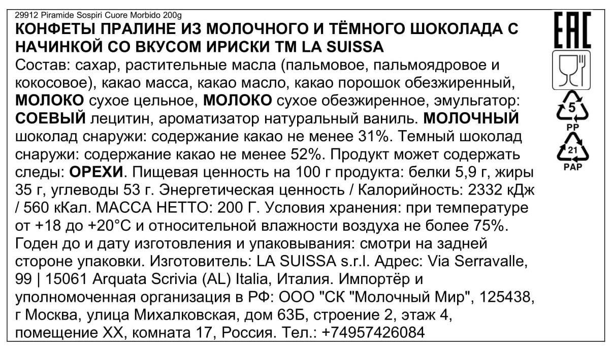 Конфеты La Suissa молочный и темный шоколад пирамидка, 200г