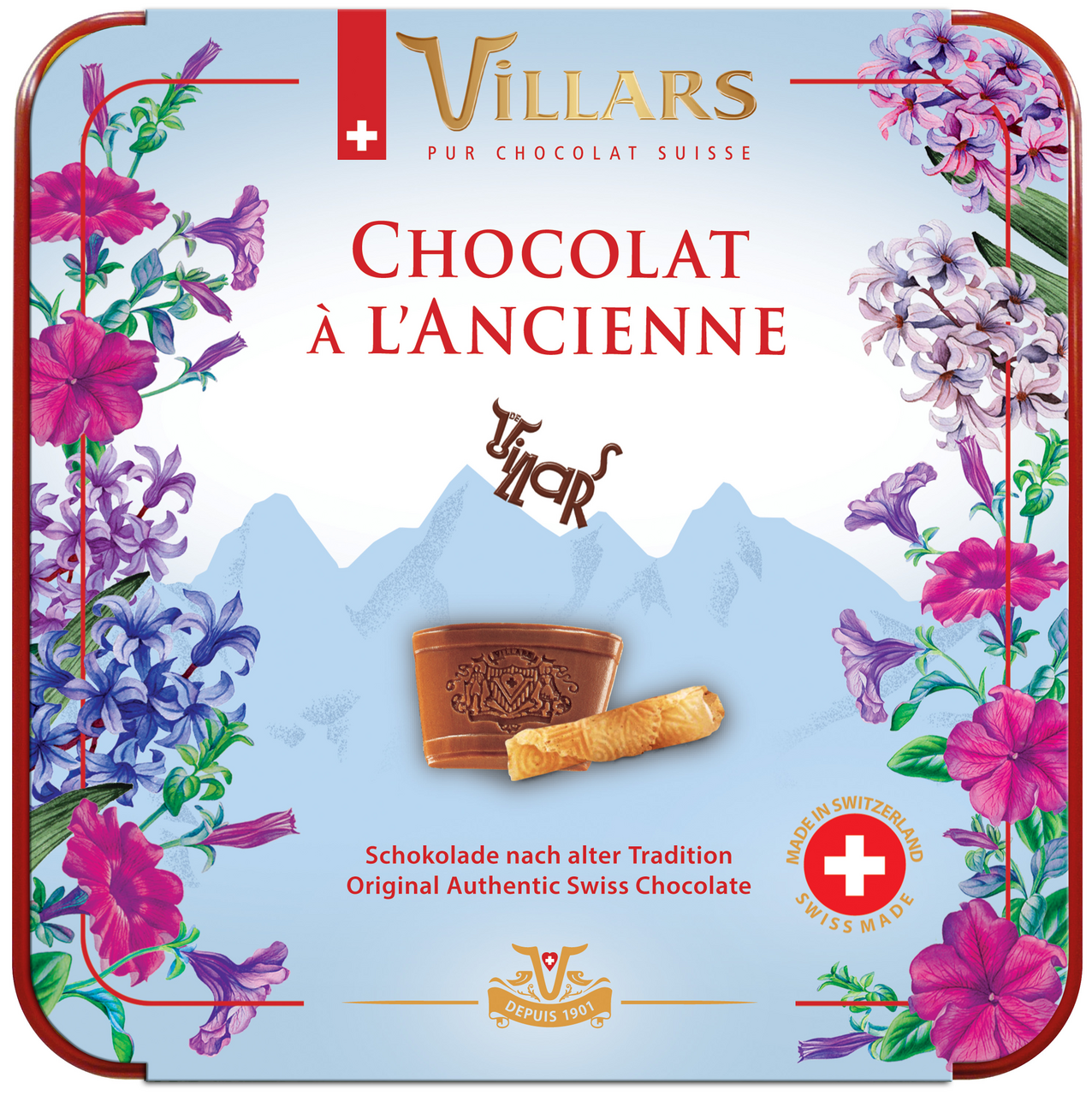 Роскошное ассорти мини-шоколада по старинным швейцарским рецептам в индивидуальных упаковках: молочный шоколад, горький, молочный с хрустящими кусочками вафель. Коллекционная металлическая подарочная коробка в съемном рукаве с цветочными орнаментами станет прекрасным статусным подарком в весенние праздники и подчеркнёт тонкий вкус её дарителя.