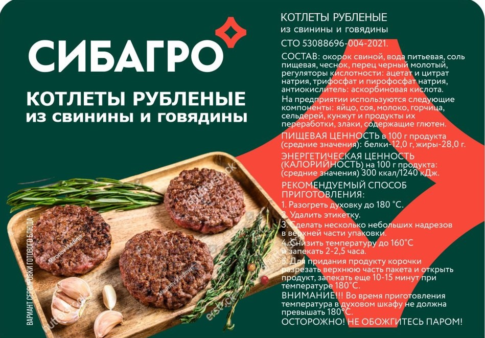 Котлеты из свинины и говядины Сибагро рубленные охлажденные, 200г
