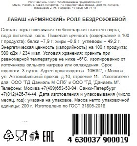 Лаваш Даниэль М армянский тонкий бездрожжевой, 200г