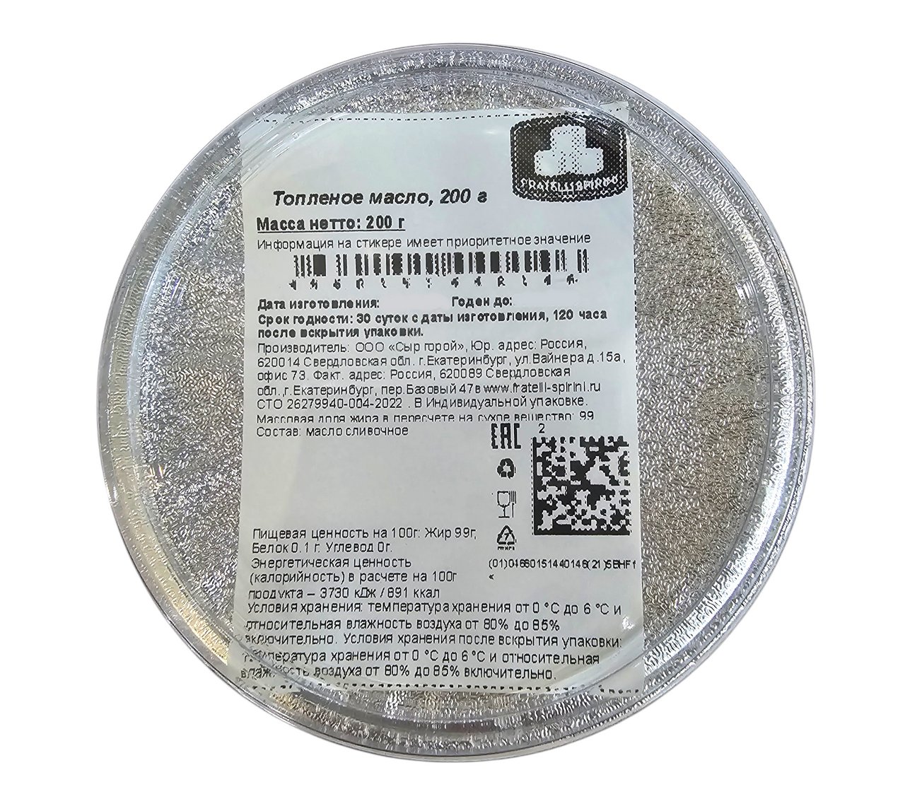 Масло сливочное Fratelli Spirini топленое 99%, 200г
