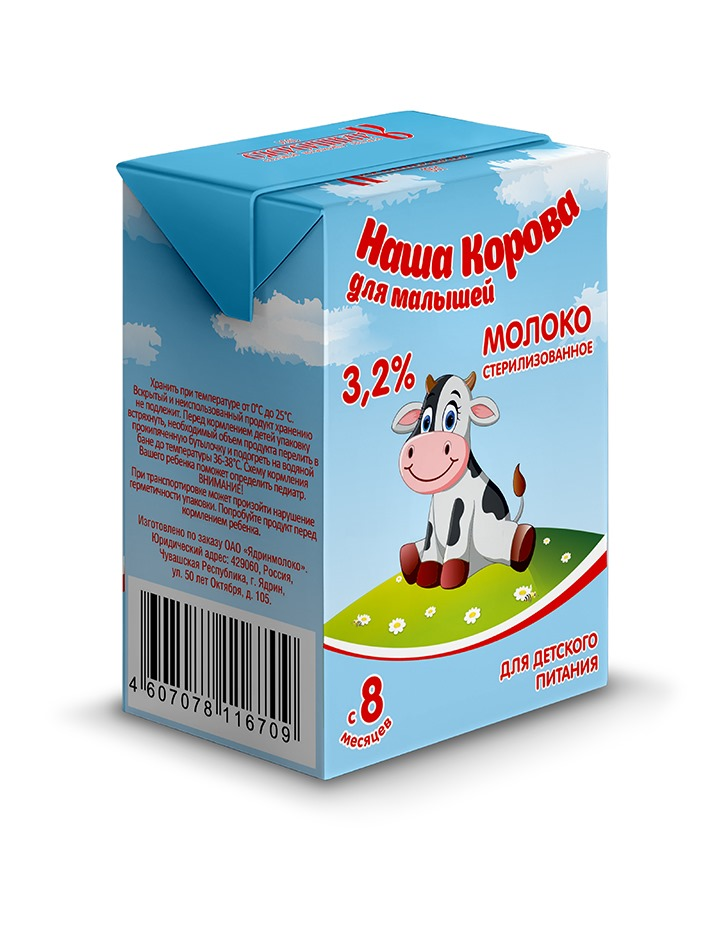 Молоко детское Наша корова стерилизованное 3.2% с 8 месяцев, 200г