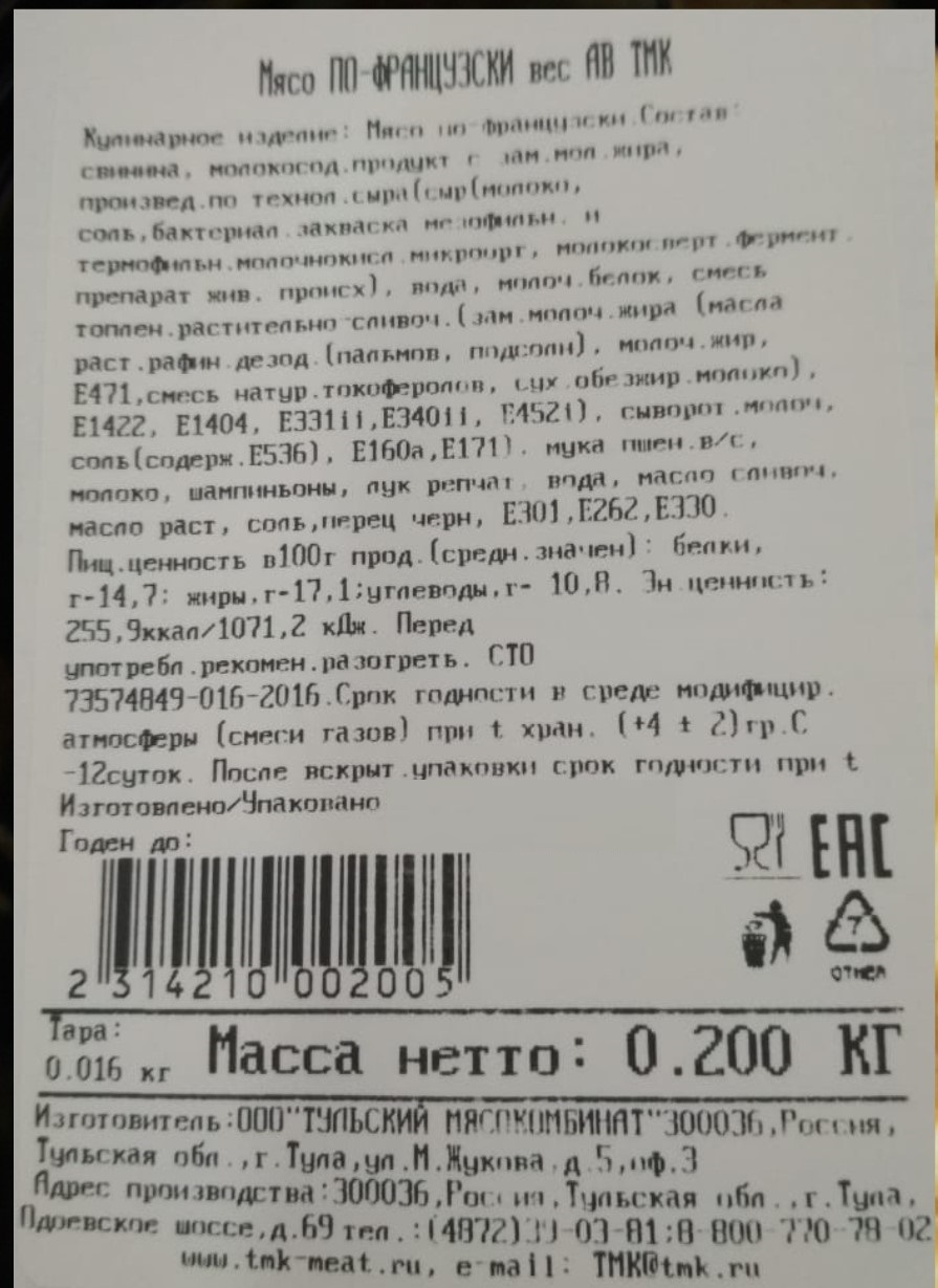 Мясо По-французски Тульский Мк охлажденное, ~200г