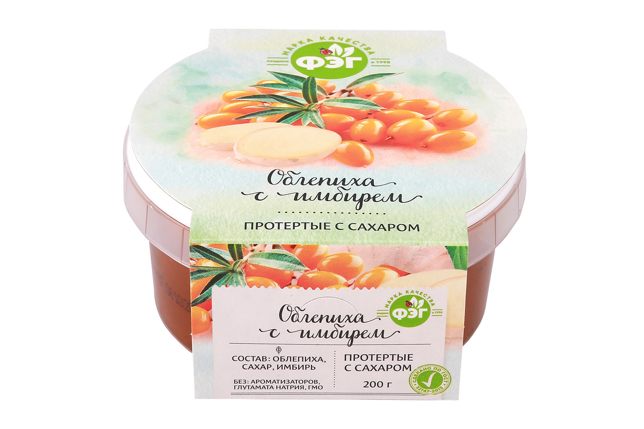 Облепиха Фэг протертая с сахаром и имбирем, 200г