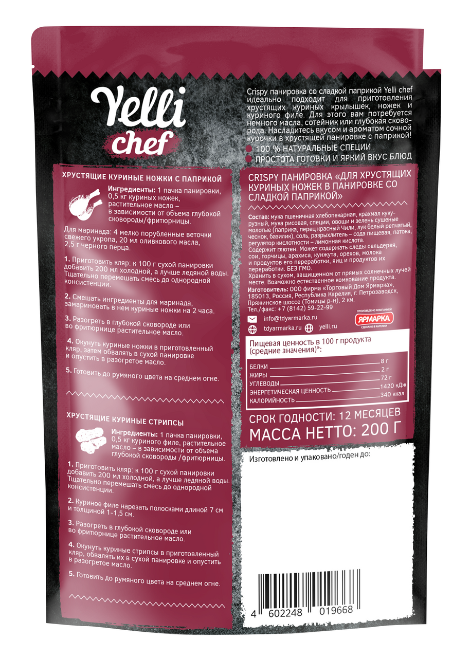 Панировка для хрустящих куриных ножек Yelli Chef Crispy, 200г