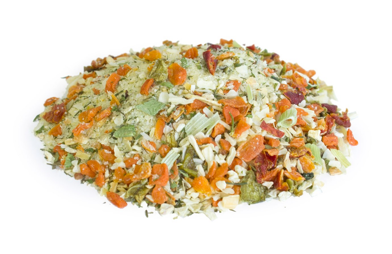 Овощи богаты витаминами и микроэлементами, а поэтому очень полезны для организма. В состав нашей приправы входят целых 12 овощей и трав! Они сделают ваши блюда более полезными, вкусными, подарят аппетитный вид и прекрасный аромат!