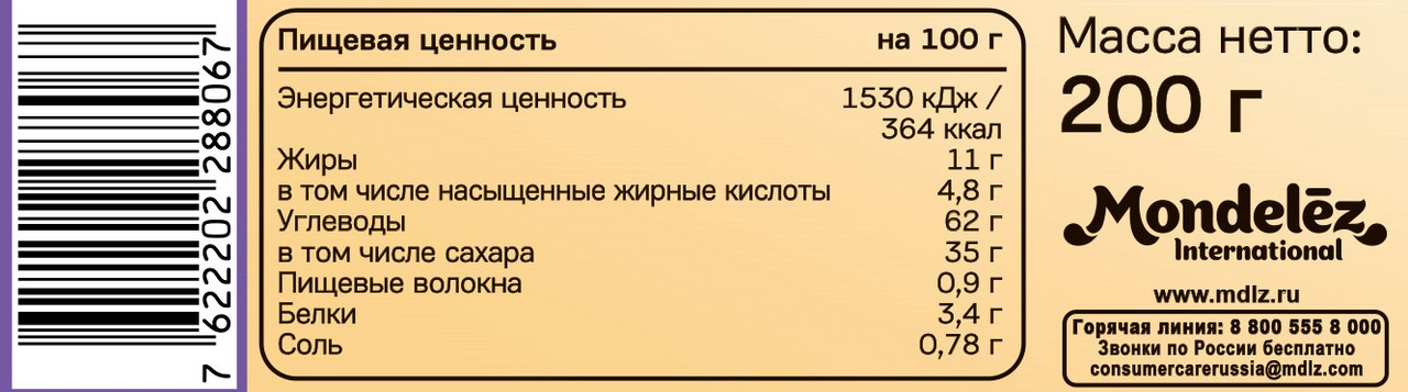 Бисквит: мука пшеничная, сахар, глюкозный сироп, инвертный сахарный сироп [сахар, вода питьевая, соль, регулятор кислотности (лимонная кислота)], влагоудерживающие агенты (сорбит, глицерин, пропиленгликоль), вода питьевая, масло растительное (подсолнечное), яичные продукты, эмульгаторы (моно- и диглицериды жирных кислот, эфиры полиглицерина и жирных кислот, лецитин подсолнечный), разрыхлители (дигидропирофосфат натрия, гидрокарбонат натрия), спирт этиловый ректификованный из пищевого сырья Люкс крепость 96,3 % об., соль, ароматизатор, регулятор кислотности (лимонная кислота), стабилизатор (ксантановая камедь), консервант (сорбат калия); Крем со вкусом ваниль: масло растительное (пальмовое), глюкозный сироп, декстроза, инвертный сахарный сироп [сахар, вода питьевая, соль, регулятор кислотности (лимонная кислота)], спирт этиловый ректификованный из пищевого сырья Люкс крепость 96,3 % об., соль, ароматизатор, консервант (сорбат калия); Начинка ягодное ассорти: глюкозно-фруктозный сироп, сахар, ягоды замороженные (клубника, красная смородина, ежевика, малина, черника), яблочное пюре [яблоки, антиокислитель (аскорбиновая кислота)], вода питьевая, желирующий агент (пектины), регуляторы кислотности (лимонная кислота, цитраты кальция), ароматизатор, краситель (кармины), консервант (сорбат калия); Кондитерская глазурь: сахар, гидрогенизированное растительное масло (пальмоядровое), молоко сухое обезжиренное, лактоза, какао-порошок, эмульгаторы (лецитин подсолнечный, лецитин соевый, сорбитан тристеарат), ароматизатор, консервант (сорбат калия).