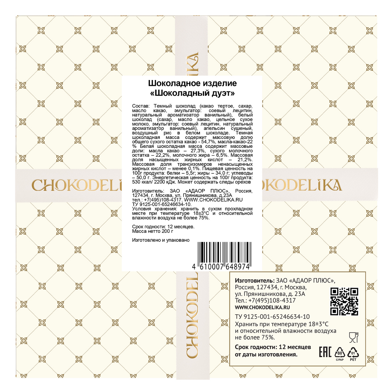 Шоколад Chokodelika темный шоколадный дуэт, 200г