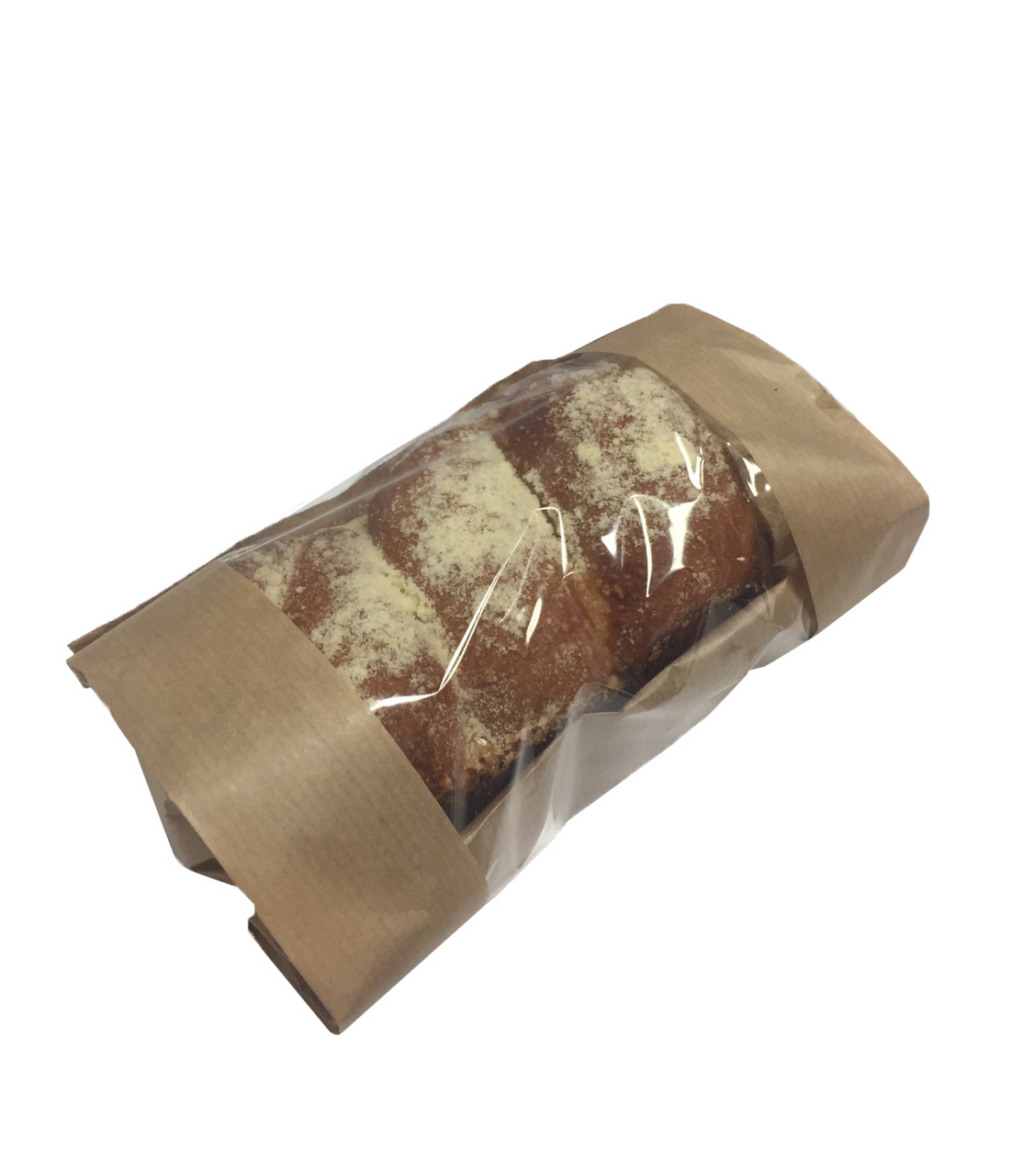 Мука пшеничная хлебопекарная высший сорт, начинка со вкусом апельсина (вода, сахар, декстроза, сироп глюкозный, влагоудерживающий агент глицерин, загустители: Е1442, крахмал пшеничный, Е466, пюре яблочное, регуляторы кислотности: кислота лимонная, цитрат натрия, красители: экстракт сафлора, кармин, ароматизатор, консервант сорбат калия), начинка лимонная (сахар, лимоны, патока крахмальная, загуститель пектин, крахмал кукурузный, регуляторы кислотности кислота лимонная, цитрат натрия, цитрусовые пищевые волокна, стабилизатор цитрат кальция, ароматизатор, консервант сорбиновая кислота, краситель турмерик), маргарин (рафинированные дезодорированные растительные масла, эмульгатор эфиры полиглицерина и жирных кислот, соль, сахар, консервант сорбат калия, регулятор кислотности лимонная кислота, ароматизатор, краситель каротины, антиокислители: аскорбиновая кислота, Е307), продукты яичные, сахар, вода, дрожжи хлебопекарные, соль, комплексная пищевая добавка (эмульгатор эфиры глицерина и диацетилвинной и жирных кислот, мука соевая, солод пшеничный, антиокислитель аскорбиновая кислота), консервант пропионат кальция.
