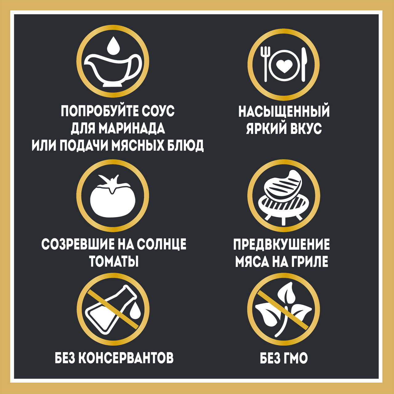 Это гармоничное сочетание спелых томатов с классическим японским маринадом Терияки, чесноком и пряными специями, которые подчеркивают вкус блюд, приготовленных на гриле. Подавайте его не только к шашлыку на пикнике, но и в домашних условиях. Он придаст характерный аромат жареному мясу и свиным ребрышкам, котлетам и тефтелям, сосискам и куриным крылышкам, пицце и пельменям, печеному картофелю или картофельным долькам во фритюре.