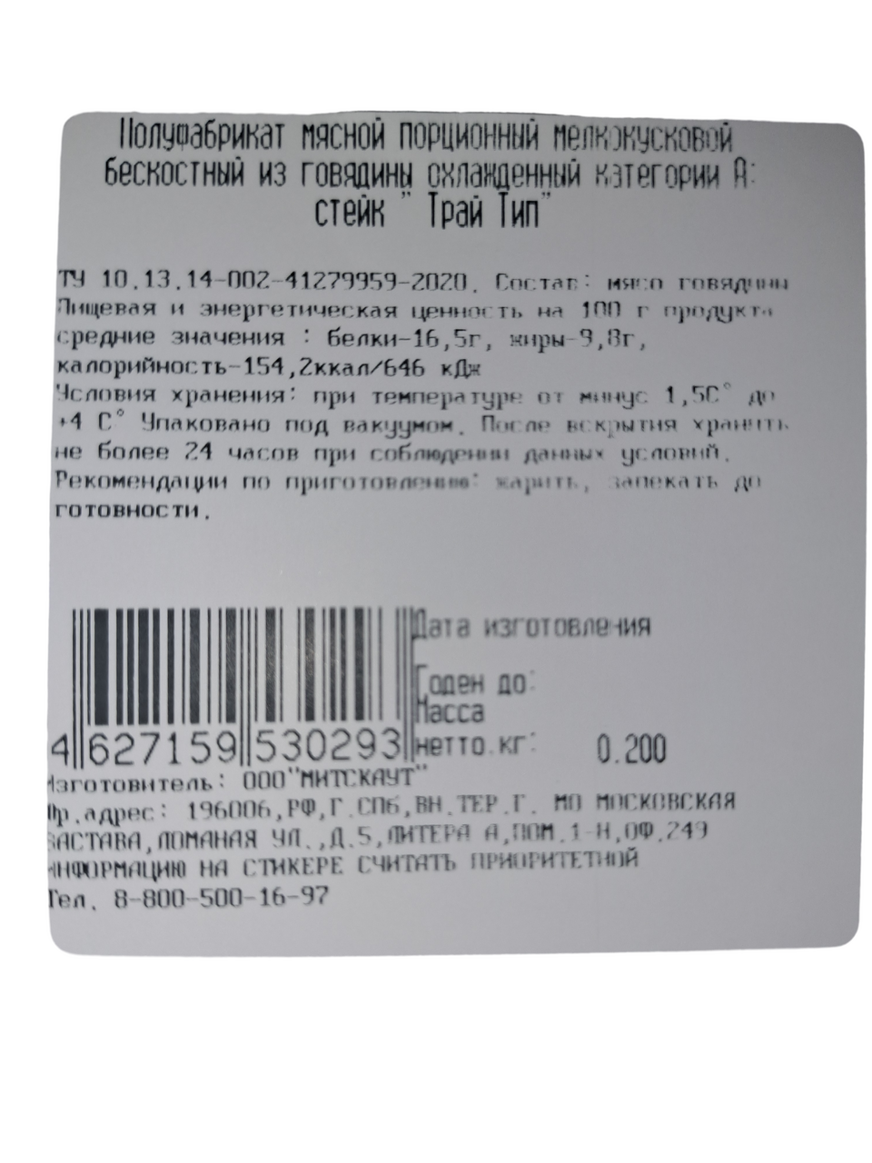 Стейк из мраморной говядины Myasoet Meat Company Трай-тип охлажденный, 200г