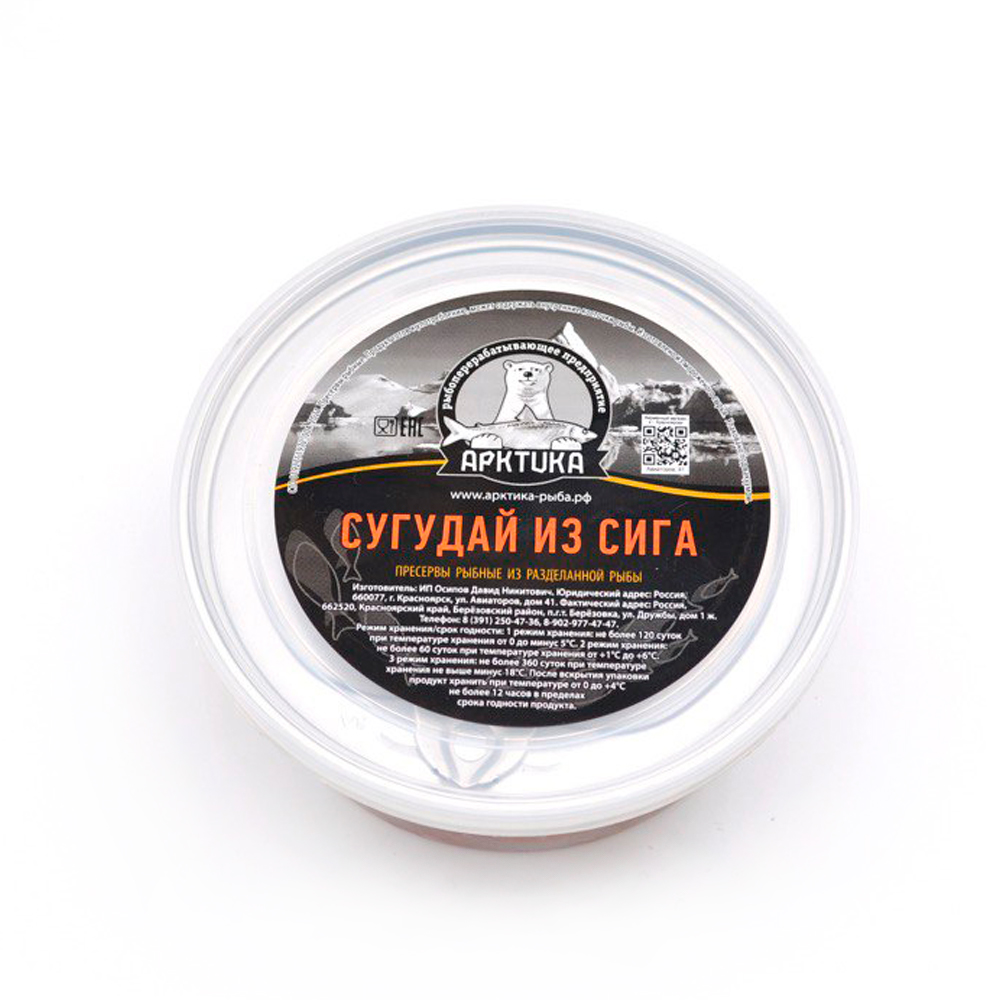 Сугудай изготавливается из кусочков рыбного филе с добавлением растительного масла, соли и черного молотого перца. Это блюдо, которое готово к употреблению. Его можно сразу подавать к столу. По своему вкусу вы можете также добавлять в Сугудай лук, маслины, бруснику, лимон, зерна граната. Продукт упакован по новой технологии: закатка под вакуумом в пластиковую банку с алюминиевой крышкой. Новый высокотехнологичный вид упаковки исключает попадание воздуха, бактерий и грибковых спор в банку из внешней среды при хранении и транспортировке, что позволяет увеличить срок годности продукта.Готовая к употреблению закуска. Сугудай из сига в меру жирный, нежный и отличается легкой горчинкой.