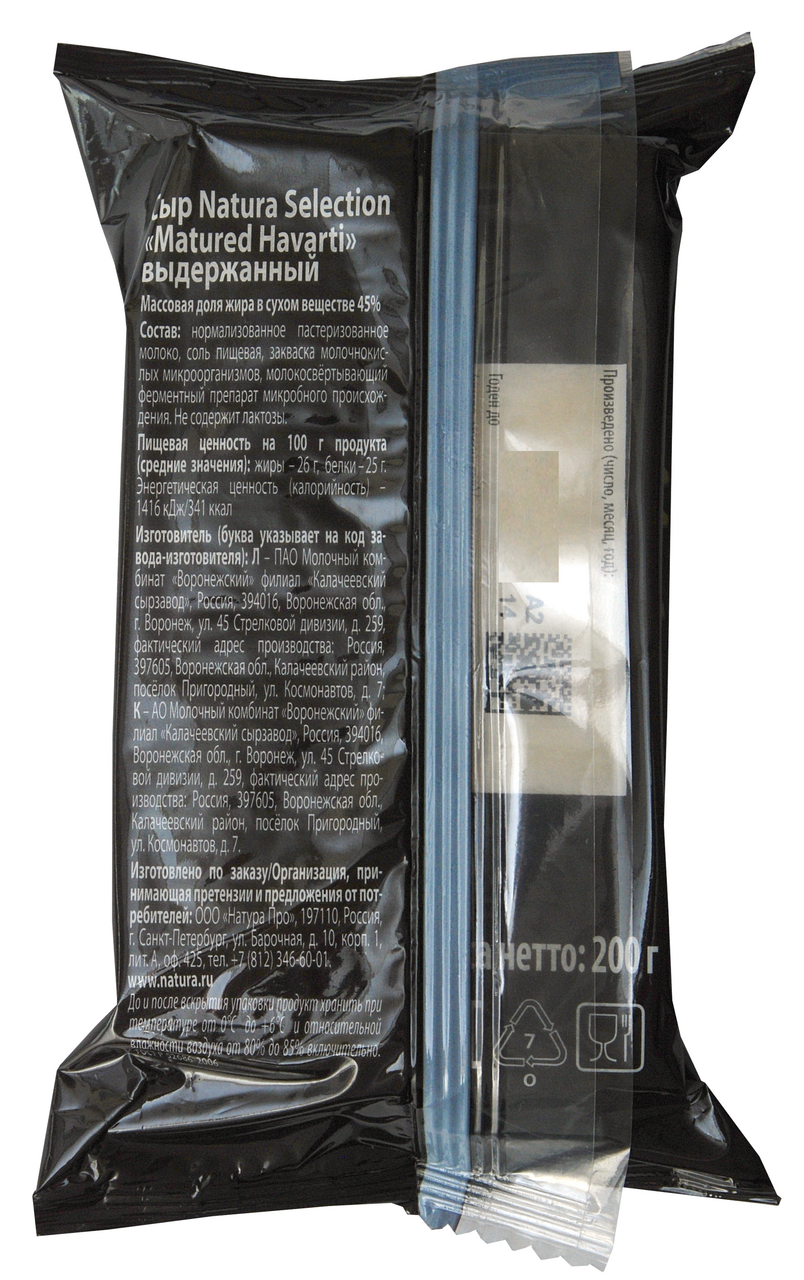 Сыр Natura selection Matured Havarti выдержанный 45%, 200г