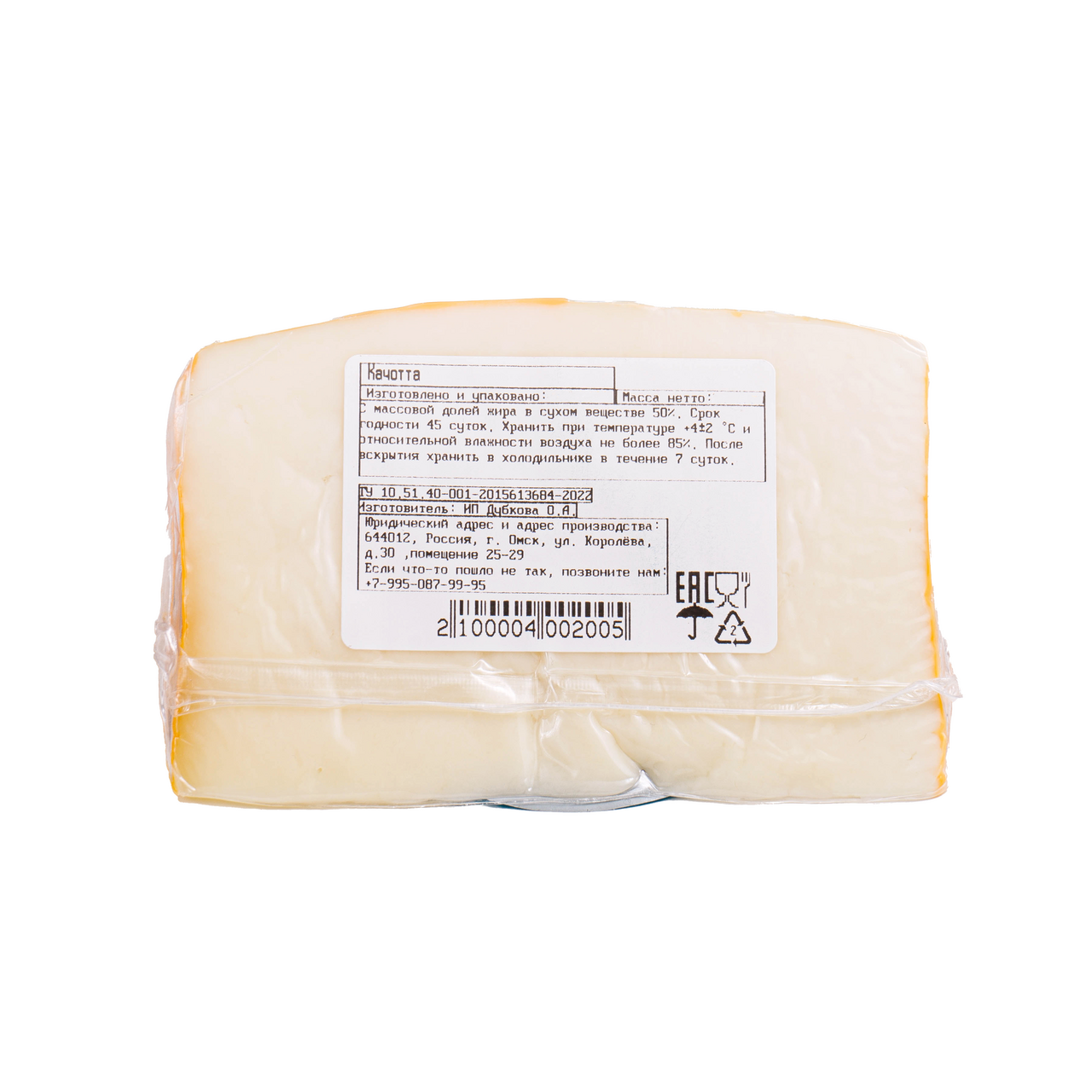 Сыр Над хлебом с маслом Качотта, ~200г