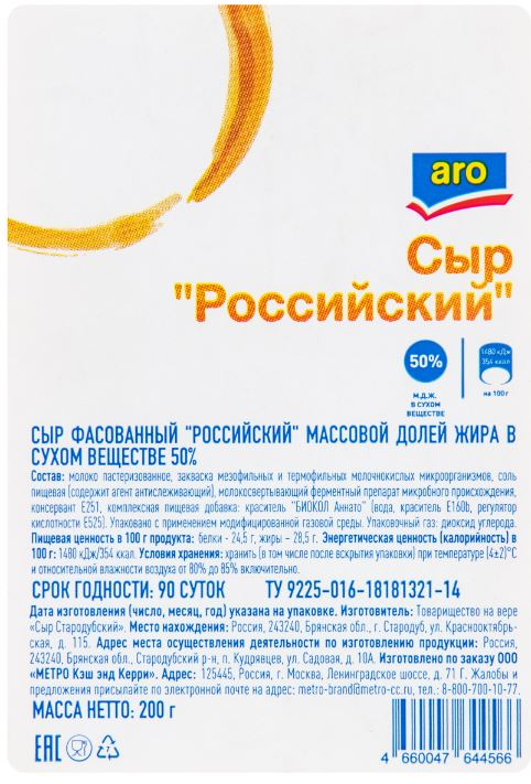 Молоко пастеризованное, закваска мезофильных и термофильных молочнокислых микроорганизмов, соль пищевая (содержит агент антислеживающий), молокосвертывающий ферментный препарат микробного происхождения, консервант Е251, комплексная пищевая добавка: краситель БИОКОЛ Аннато (вода, краситель Е160b, регулятор кислотности Е525).