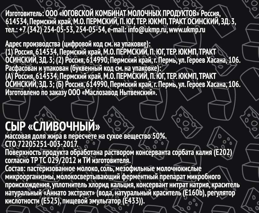 Сыр Маслозавод Нытвенский Сливочный полутвердый 50%, 200г