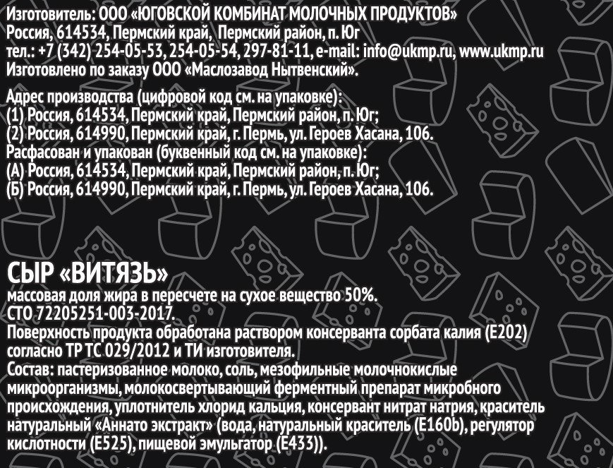Сыр витязь Маслозавод Нытвенский 50%, 200г
