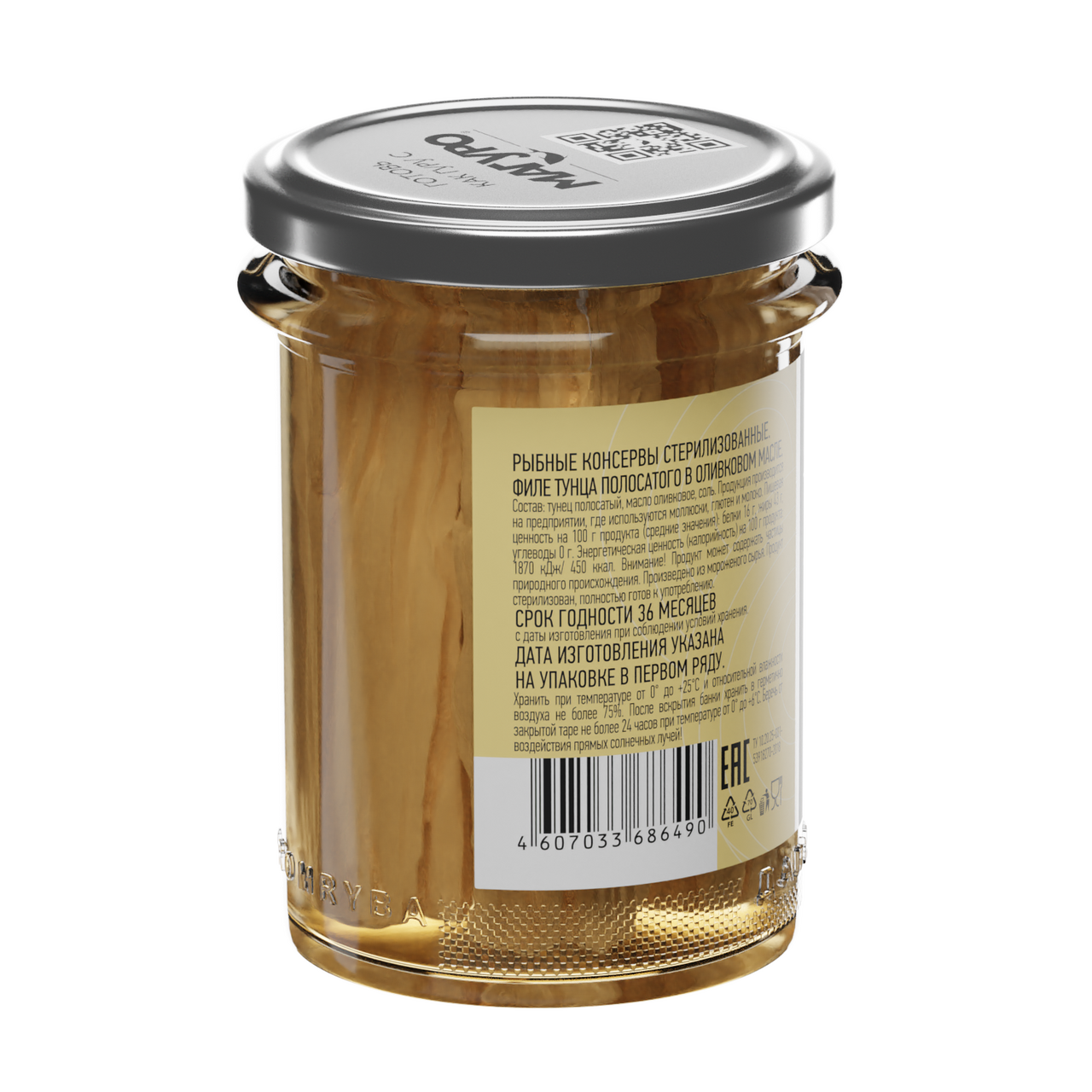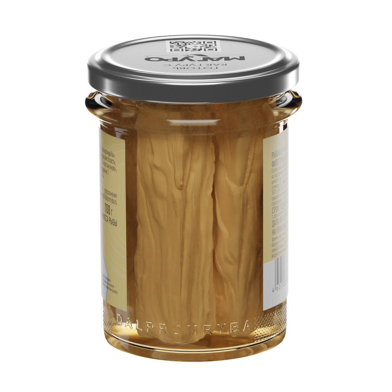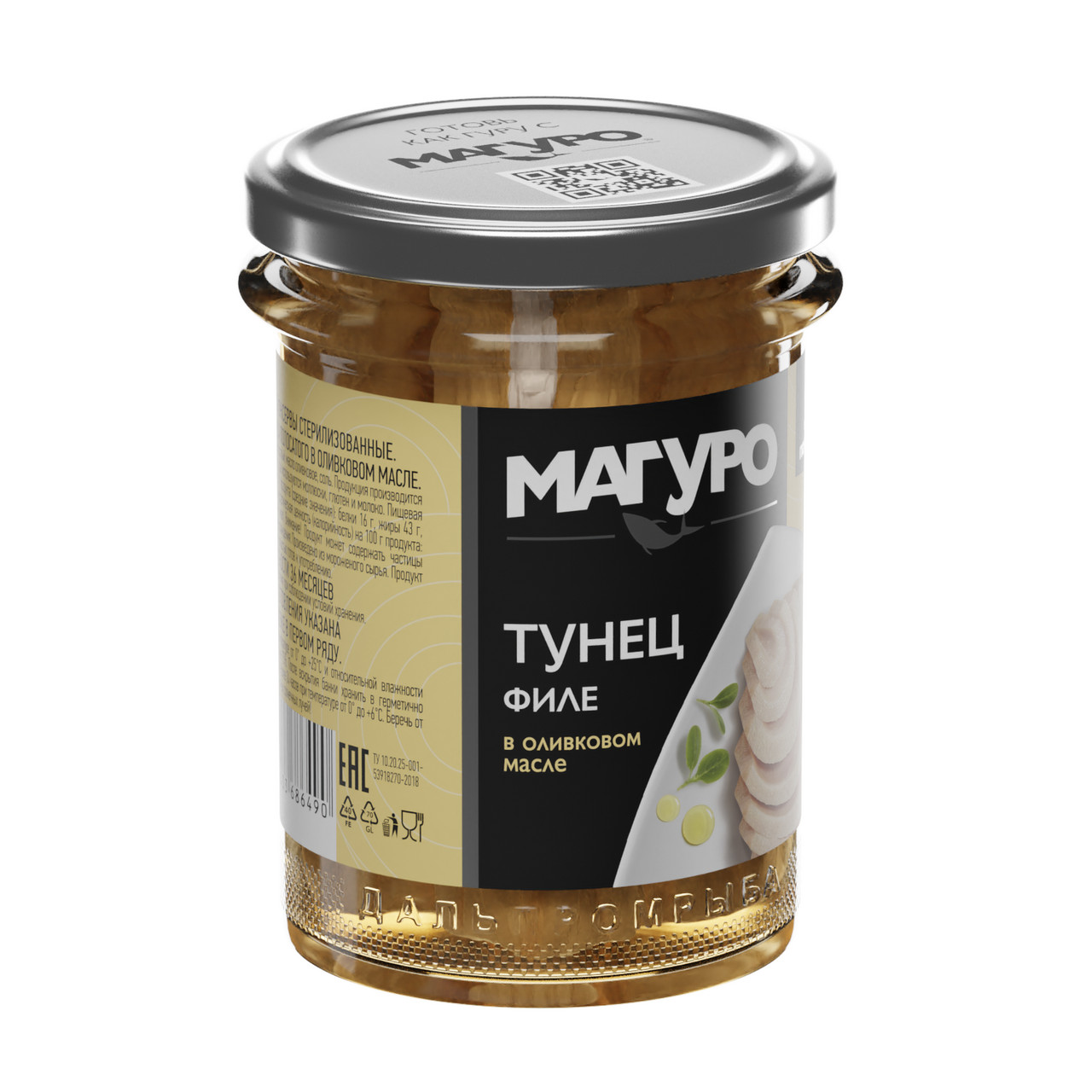 Нежное и сочное мясо полосатого тунца содержит жирные кислоты Омега-3 и является источником белка. Благодаря добавлению оливкового масла вкус тунца Магуро обретает изысканную выразительность, свойственную средиземноморской кухне. Прозрачная стеклянная банка подчеркивает премиальное качество продукта: здесь исключительно цельные крупные кусочки приятного розового оттенка. Оливковое масло с благородными нотками тунца прекрасно подходит для заправки салатов и приготовления соусов.