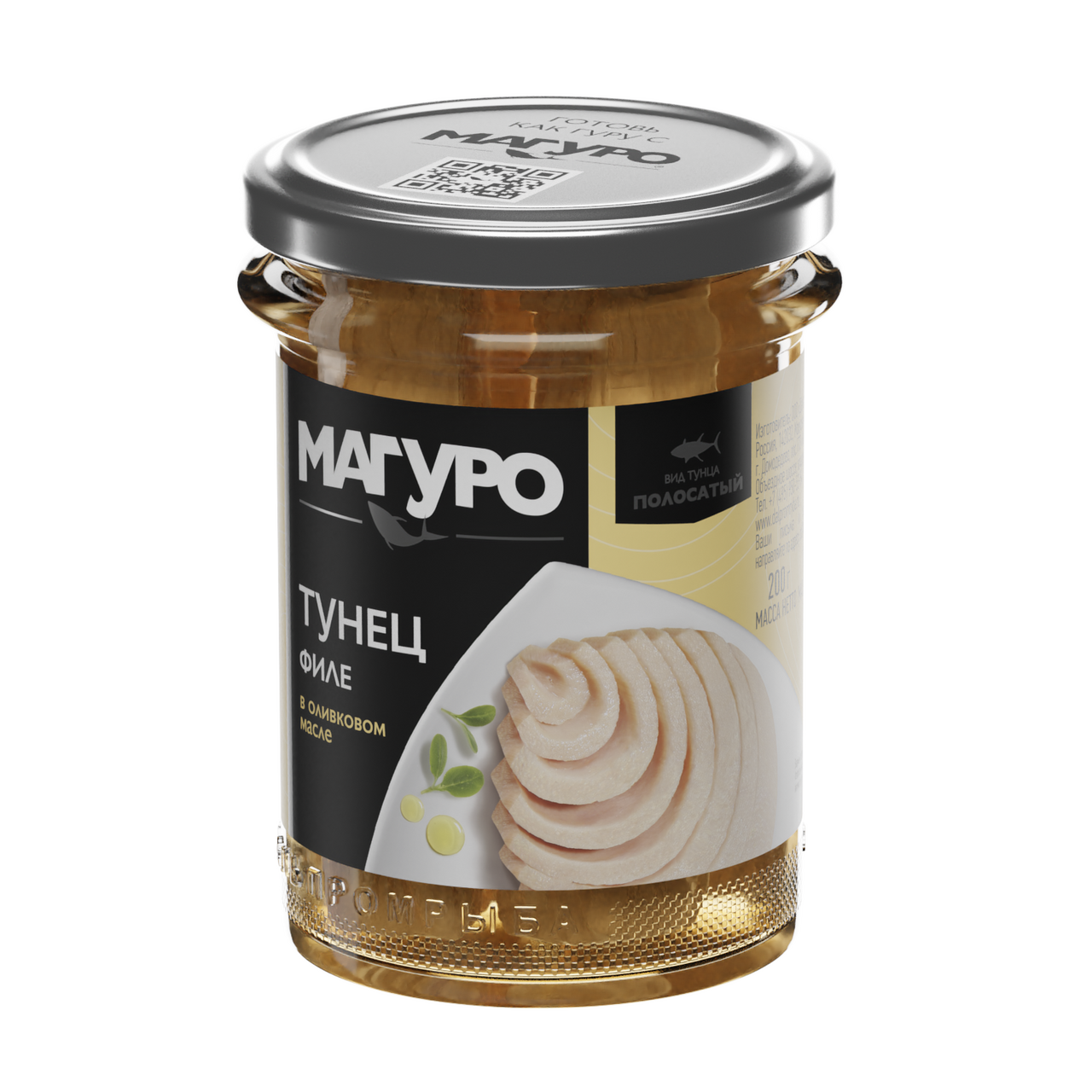 Тунец полосатый Магуро филе в оливковом масле, 200г