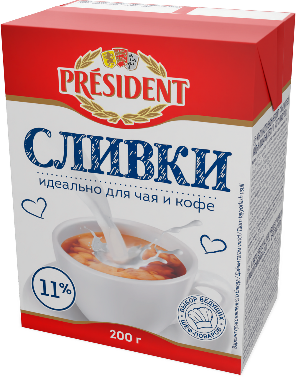Сливки President ультрапастеризованные 11%, 200г