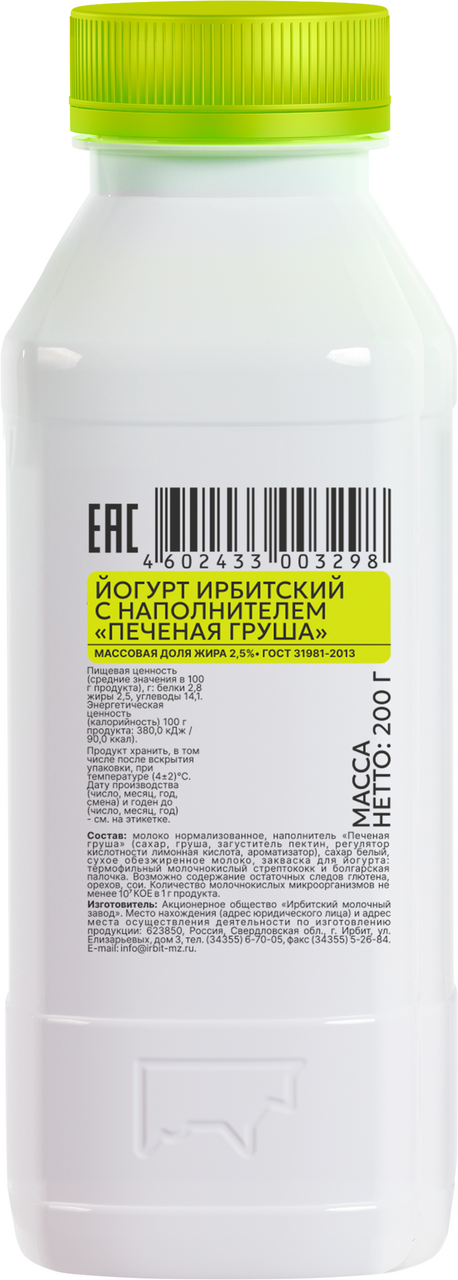 Йогурт питьевой Ирбитский молочный завод с печеной грушей ГОСТ 2.5%, 200г