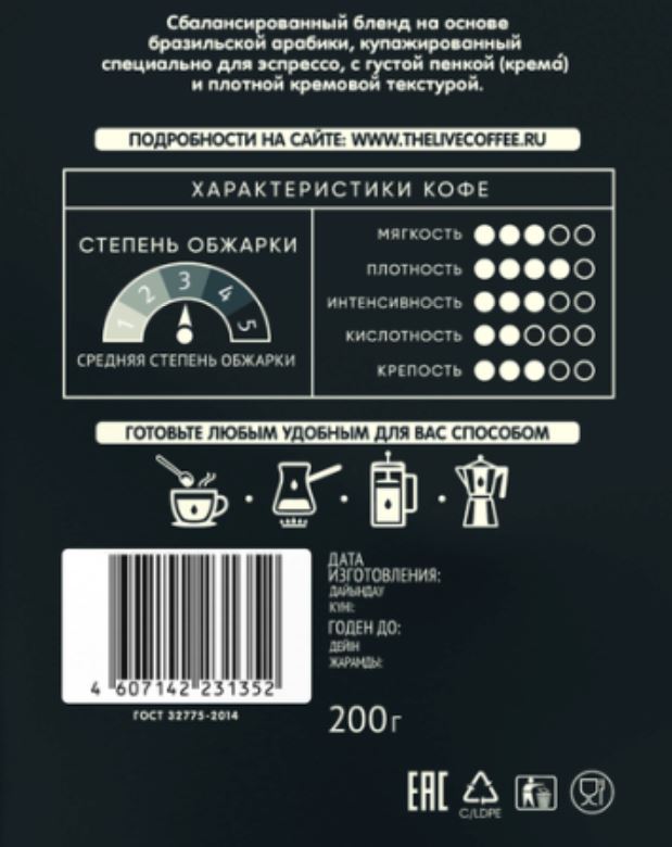 Кофе Живой кофе Rio-Rio молотый, 200г