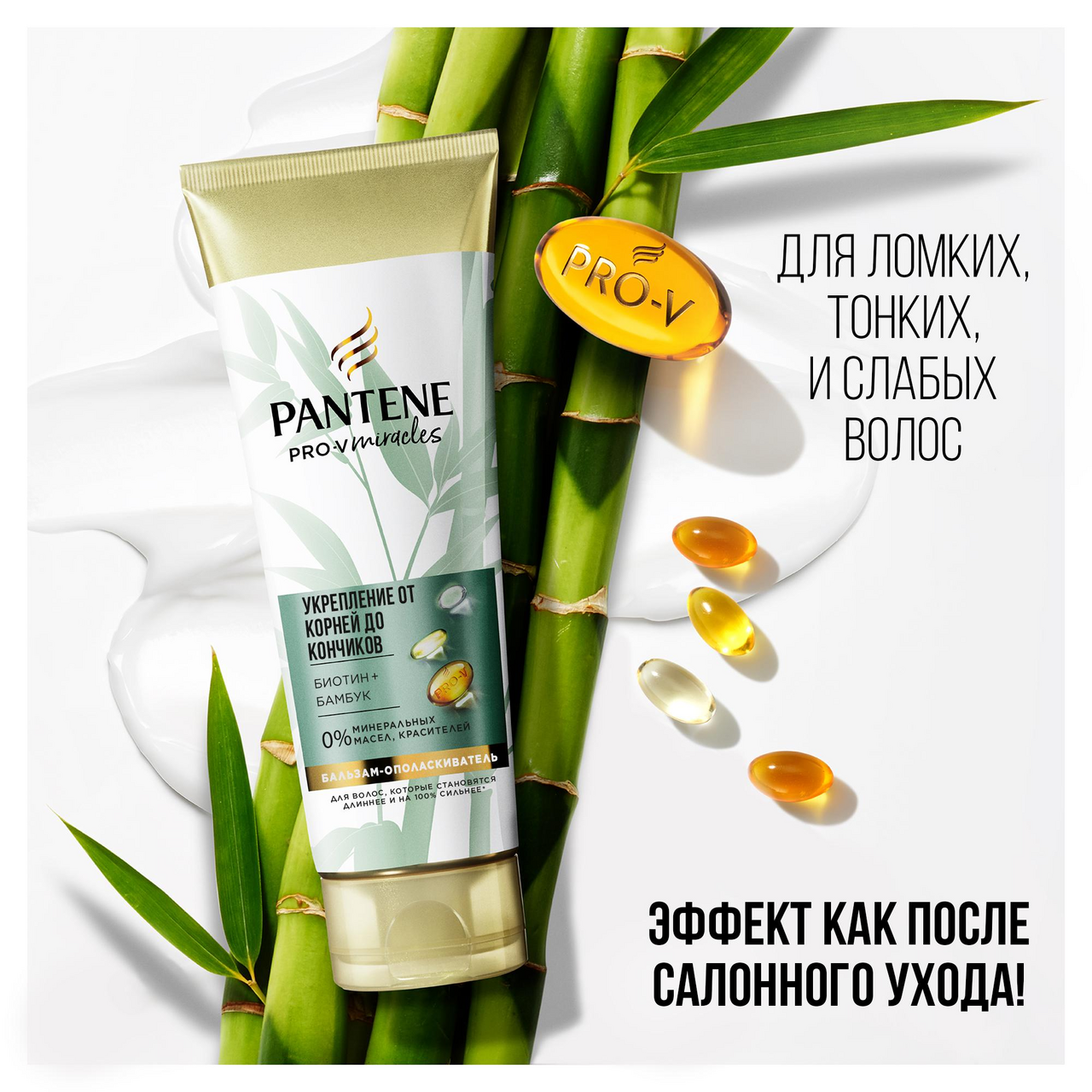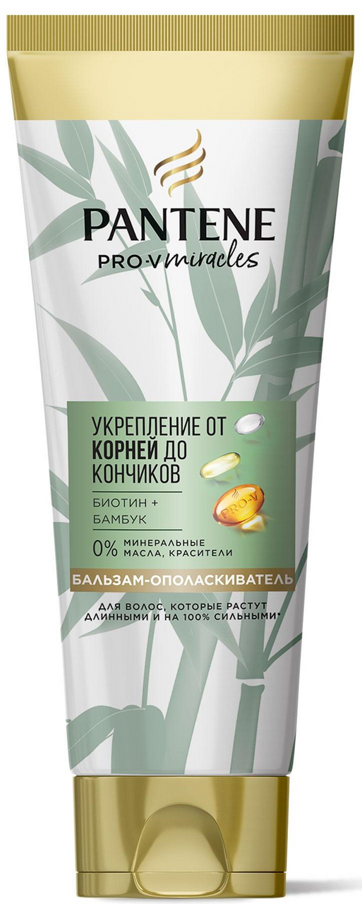 Это высокопитательная формула Pro-V для волос, которые нуждаются в чуде. Коллекция Укрепление от корней до кончиков, созданная специально для ломких, тонких и ослабленных волос, сочетает в себе силу комплекса Pro-V с экстрактом бамбука и биотином для силы, роста и густоты волос. Бальзам-ополаскиватель Рantene Pro-V Miracles Укрепление от корней до кончиков воздействует на поврежденные участки волос, помогая сократить их выпадение, связанное с ломкостью. Его формула без минеральных масел и красителей содержит ингредиенты, которые работают как антиоксиданты и не дают ионам из электроприборов в процессе укладки повреждать структуру волос. Для достижения максимального эффекта используйте в сочетании с шампунем и маской для волос; дополните уход кремом-реконструктором и средством для утолщения волос из серии Укрепление от корней до кончиков. Формула Pro-V протестирована специалистами Швейцарского Института Витаминов (Swiss Vitamin Institute).