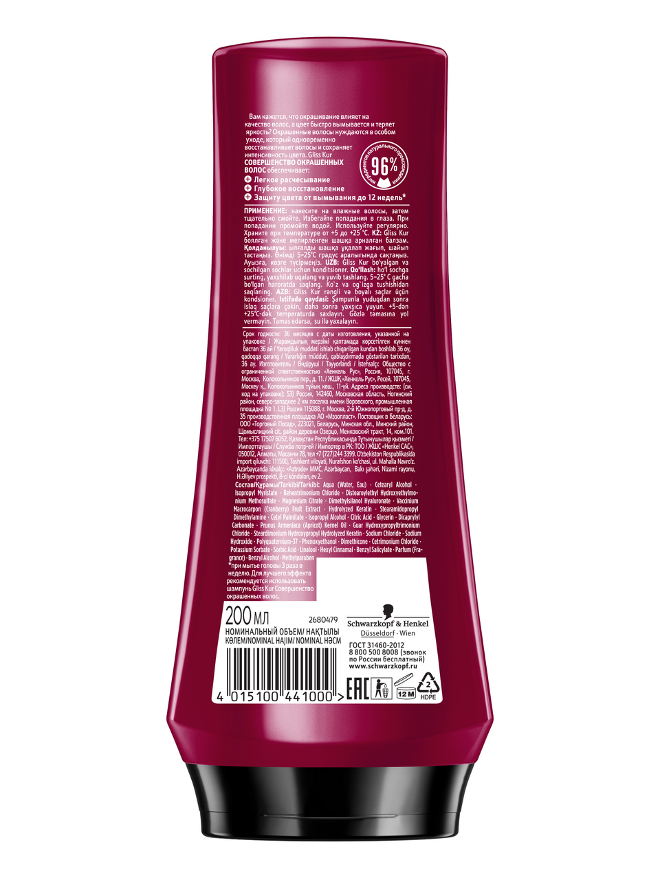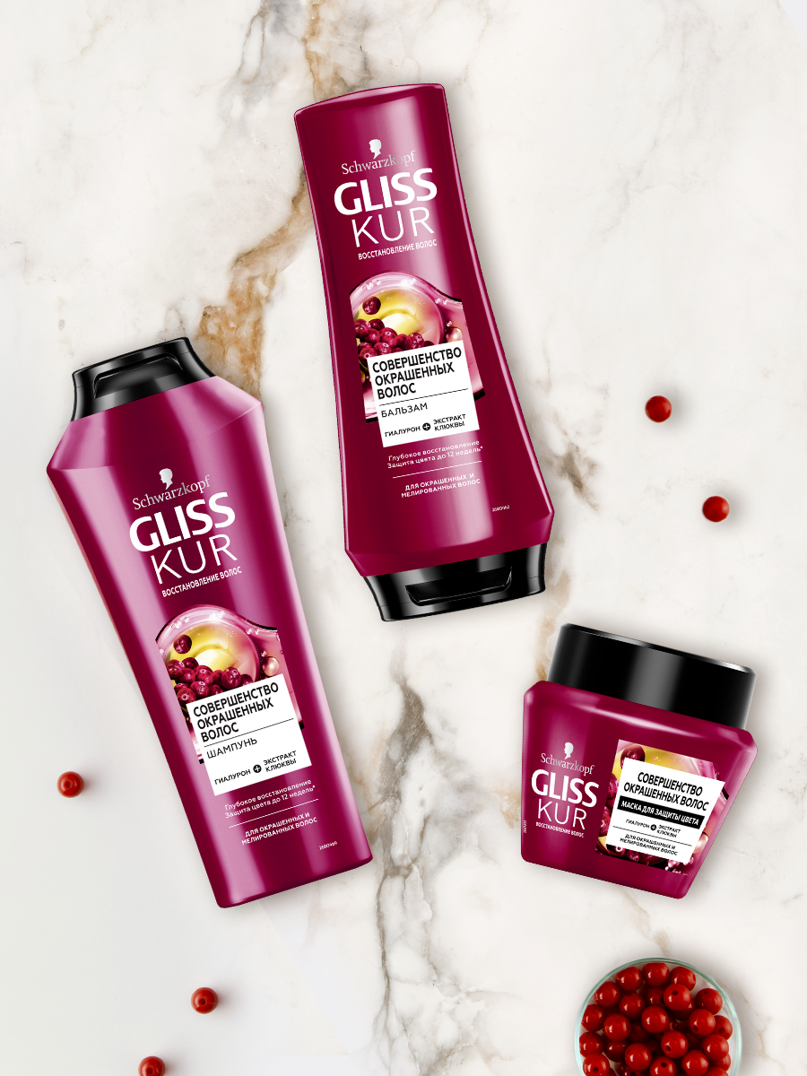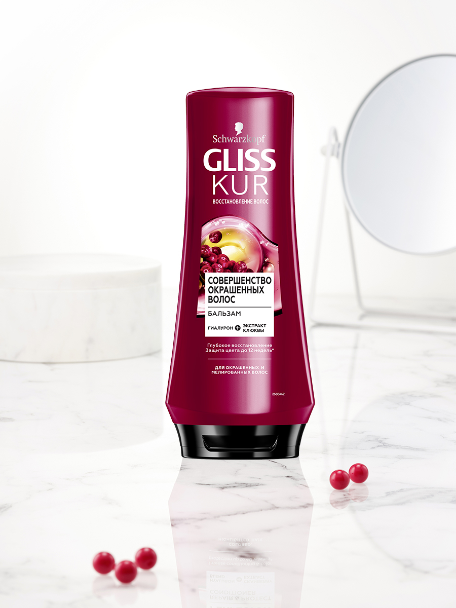 Бальзам бренда Глисс Кур обеспечивает особый уход окрашенным волосам, одновременно восстанавливая их структуру и предотвращая преждевременное вымывание цвета. Результатом становится до 12 недель насыщенного оттенка. Экстракт клюквы и гиалурон в составе питают клетки волос необходимыми микроэлементами, облегчая их расчесывание и придавая непревзойденную гладкость. Для получения наилучшего эффекта бальзам рекомендуется применять в сочетании с шампунем этой же линии.