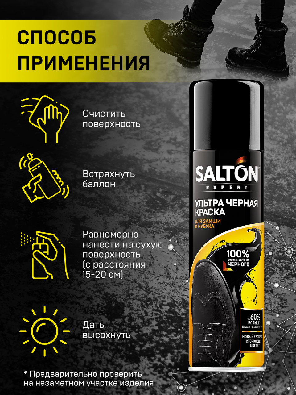 Краска для обуви Salton Expert из замшевой кожи ультра-черная, 200мл