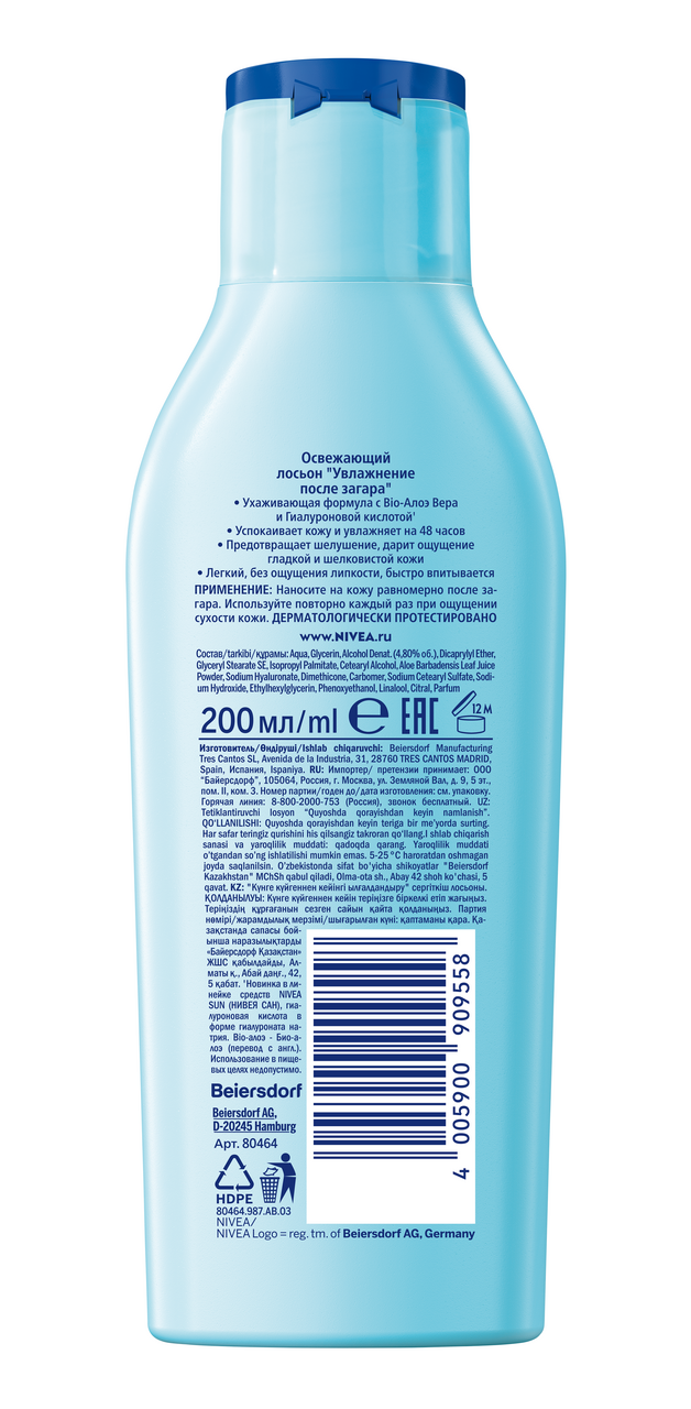 Лосьон Nivea освежающий Увлажнение после загара, 200мл