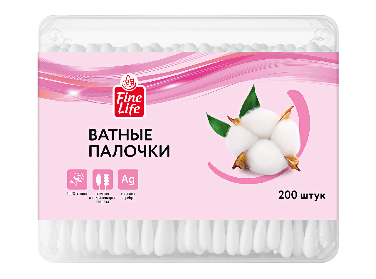 Fine Life Ватные палочки с ионами серебра, 200шт