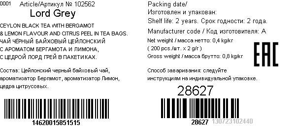 Чай чёрный байховый цейлонский, ароматизатор бергамот, ароматизатор лимон, цедра цитрусовых.