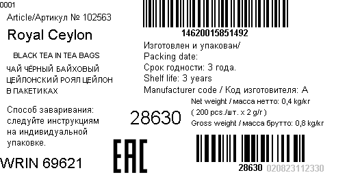 Чай черный Richard Ceylon пакетированный (2г x 200шт), 400г