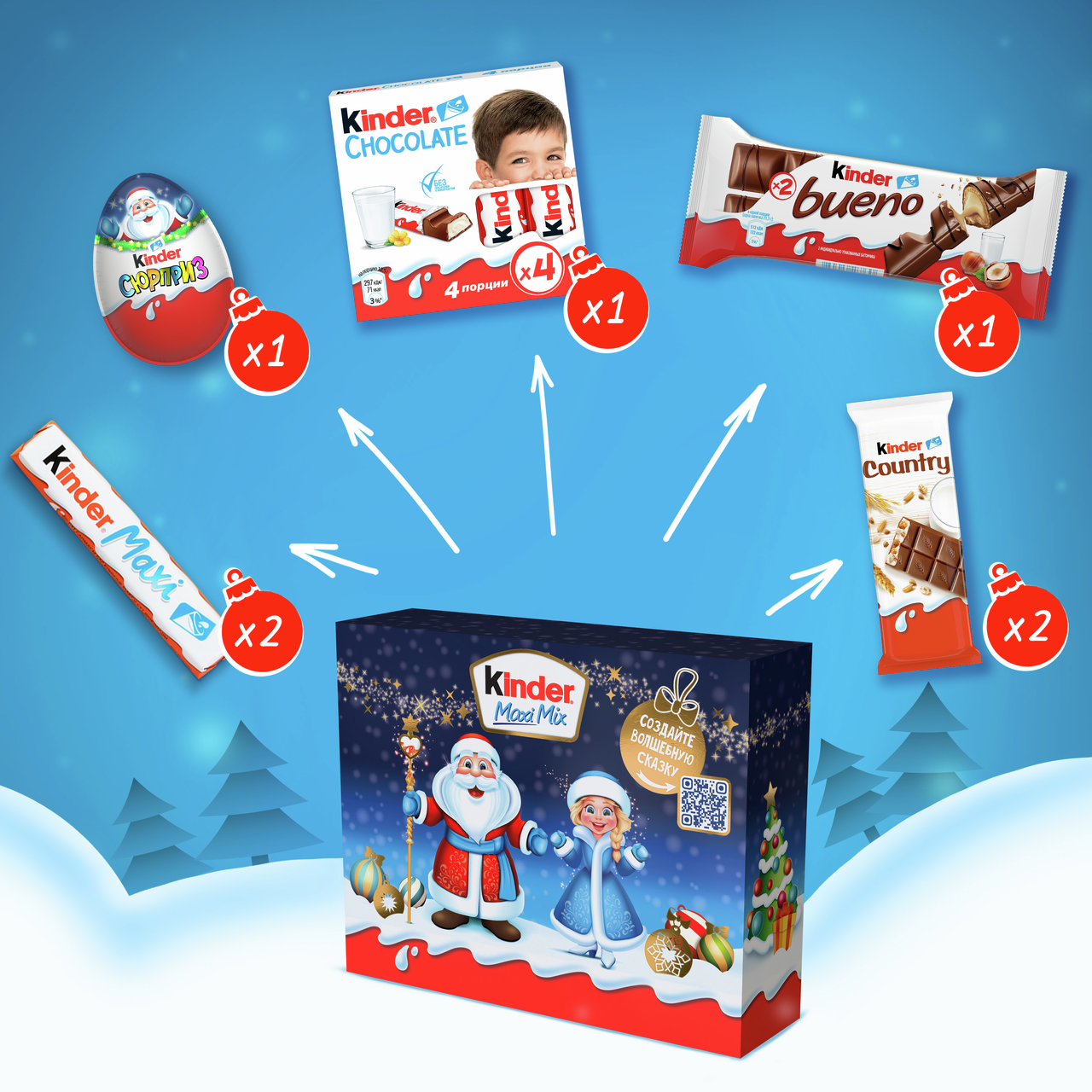 Большой набор любимых сладостей из молочного шоколада Kinder - прекрасный подарок для ребёнка на Новый Год. Фирменный подарок, который подарит море положительных эмоций. Набор идеально подходит для поздравления на Новый год и Рождество. В оригинальной упаковке вкусные шоколадные кондитерские изделия, вафли Буэно, Киндер шоколад и многое другое.