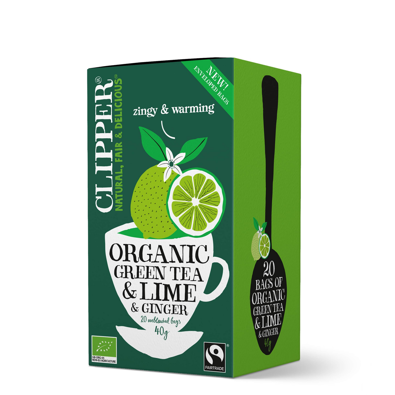 Все ингредиенты – с лучших органических чайных плантаций мира, работающих в соответствии со стандартами этичного производства. С 1984 года по сегодняшний день упаковывается вручную на фабрике в Великобритании (Beaminster, Dorset). В 1994 году CLIPPER стал первым британским чаем, отмеченным знаком Fairtrade, а сегодня это крупнейший в мире бренд чая с маркировкой Fairtrade и Organic, компания поддерживает более 114 000 производителей и их се��ей по всему миру. В 2018 году Clipper Teas стал первой в мире чайной компанией, которая перешла на использование полностью биоразлагаемых небеленых чайных пакетиков, состоящих только из натуральных ингредиентов.Зеленый чай Clipper с ароматом лайма и имбиря относится к органическим продуктам. Чайные листья для него собирают на южноиндийских плантациях, где не используются химические удобрения и пестициды. Экстракт цитруса и измельченный имбирный корень придают тонкому нежному вкусу и аристократичному аромату напитка теплые согревающие нотки, а натуральный ароматизатор усиливает этот эффект. Пакетированная форма удобна для заваривания — отвлечься от суеты и зарядиться бодростью теперь проще.