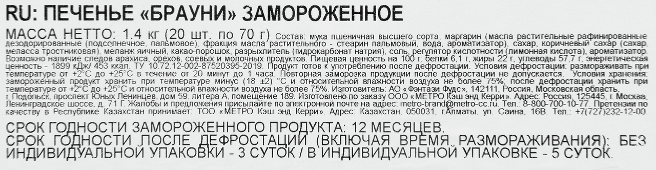 RIOBA Печенье Брауни замороженное (70г x 20шт), 1.4кг