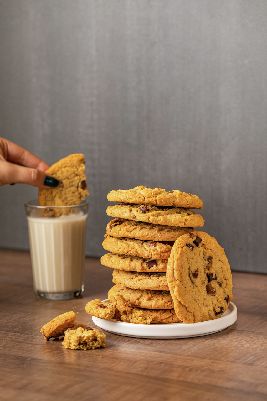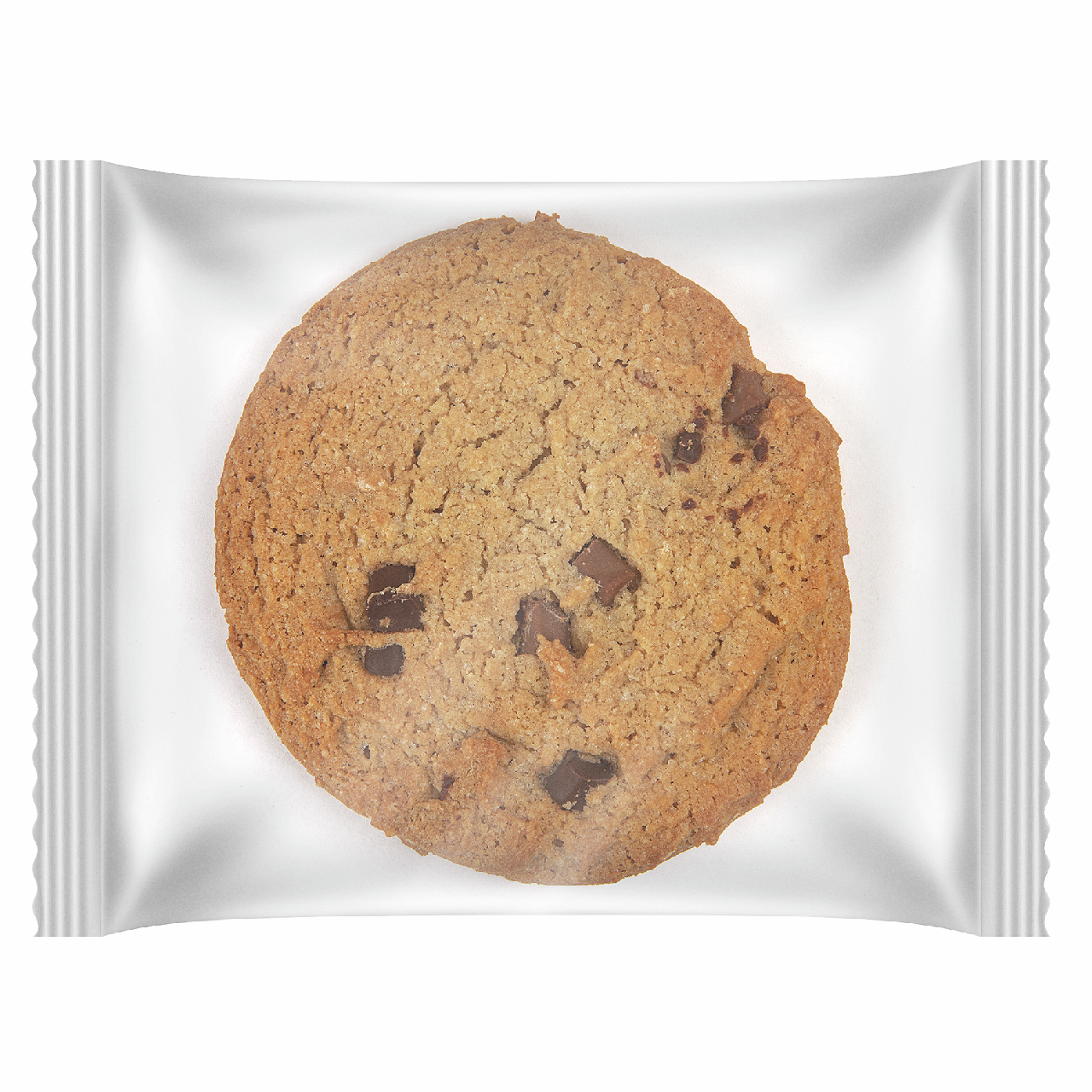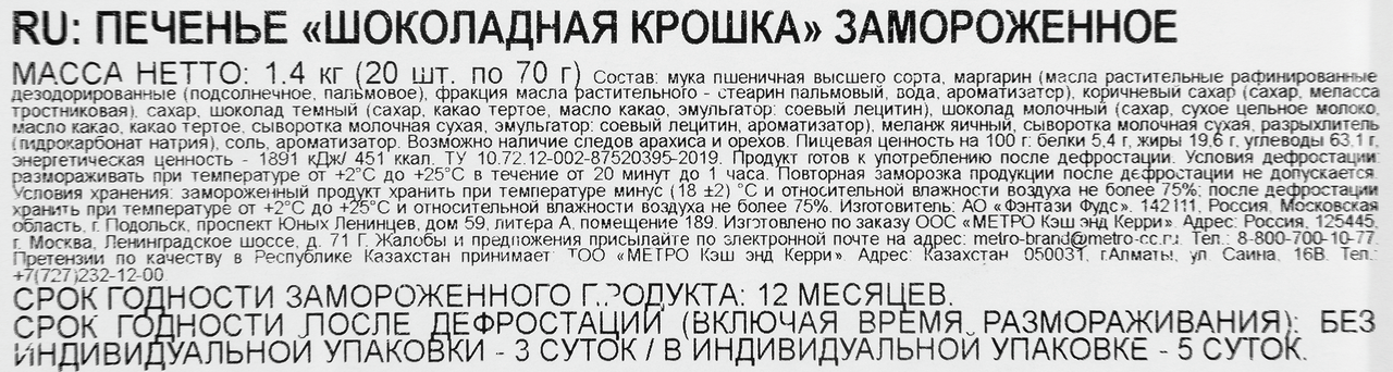 Песочное печенье с кусочками молочного шоколада, замороженное. После размораживания не замораживать снова. Способ приготовления: размораживать печенье около 60 минут при комнатной температуре.
