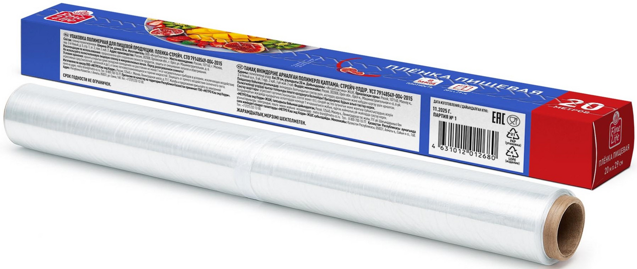 Пленка предназначена для сохранения свежести продуктов. Защищает от смешивания запахов и обветривания.