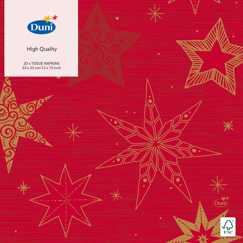 Салфетки Duni Star Stories бумажные 3-слойные красные 33 x 33см, 20листов