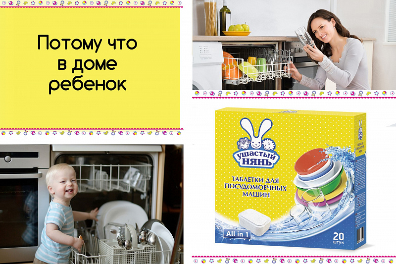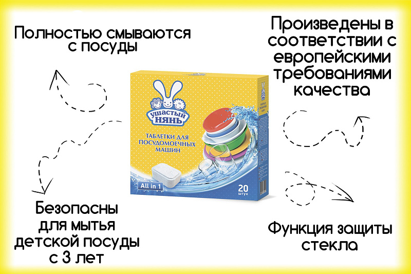 Таблетки для посудомоечной машины Ушастый нянь 20шт