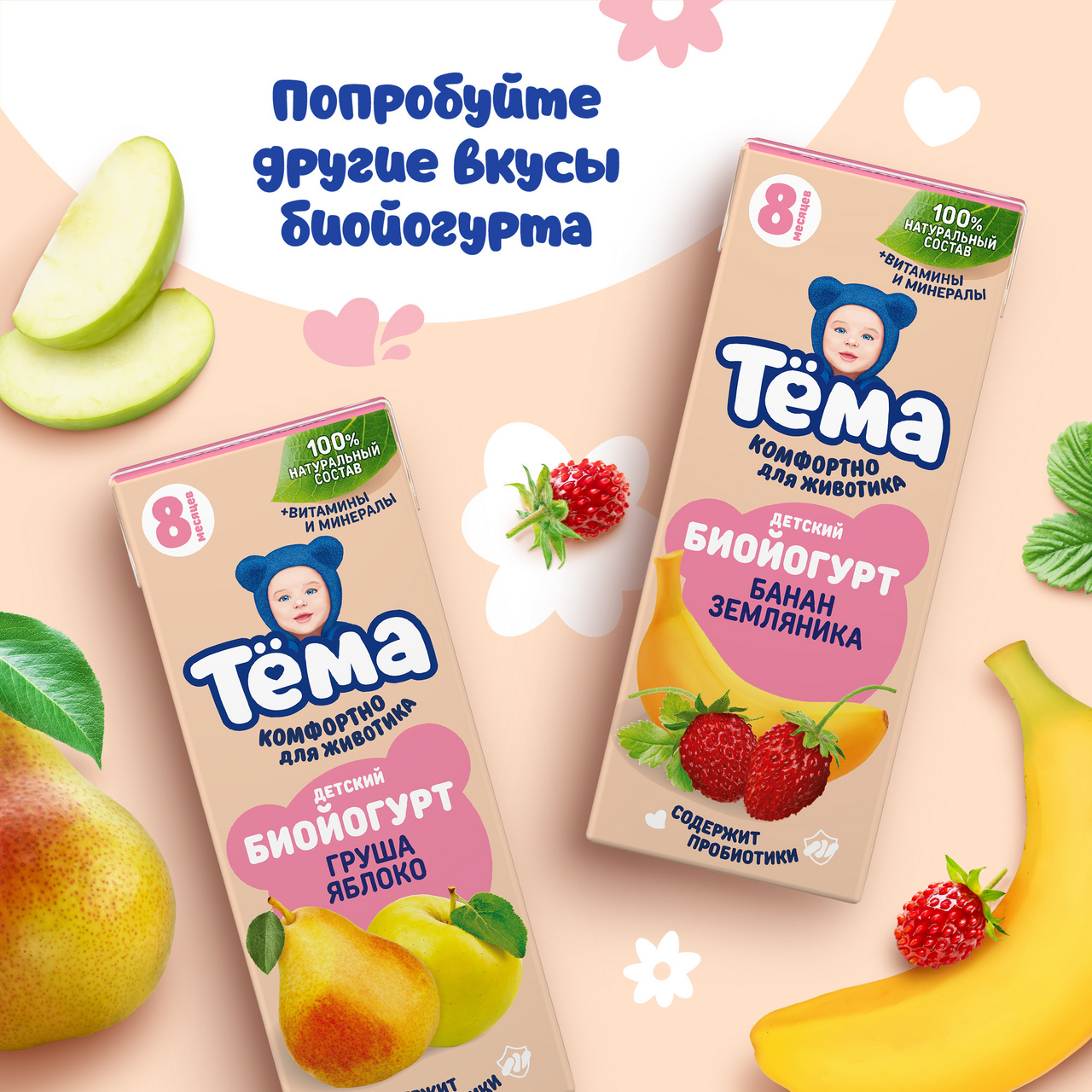 Встречайте новинку - детский биойогурт Тёма Малина. Наш биойогурт создан с любовью и вниманием к потребностям самых маленьких (с восьми месяцев). Яркий вкус малины в сочетании с сливочным йогуртом станет идеальным лакомством и точно порадует малыша. Пробиотики для комфортного пищеварения.100% натуральный состав. Напиток содержит бифидобактерии, витамины и минералы и проходит строгий контроль качества на всех этапах производства.