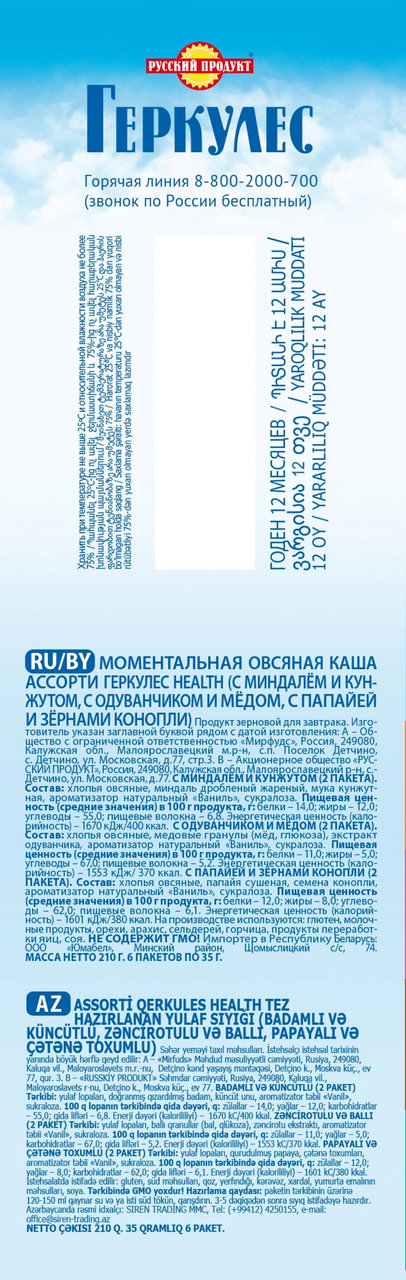Каша овсяная Русский продукт Health Ассорти моментальная, 210г