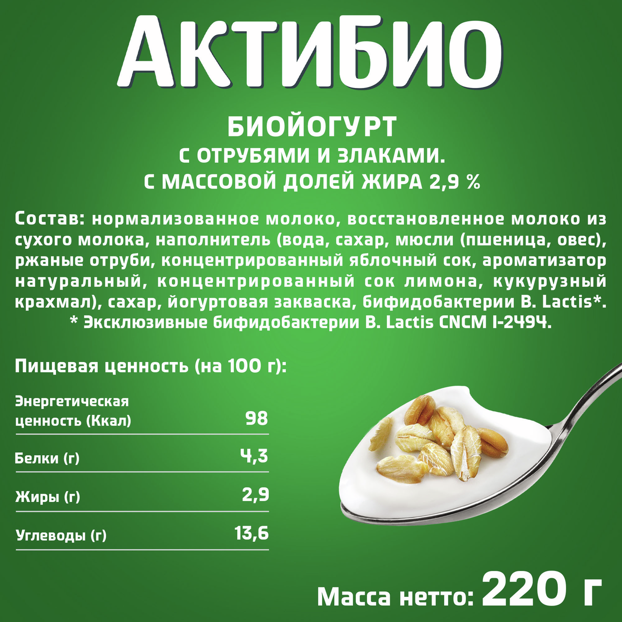 Биойогурт Актибио отруби-злаки 2.9%, 220г