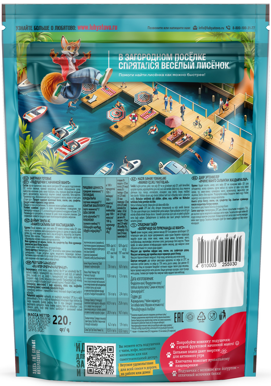 Готовый завтрак Любятово Подушечки с начинкой манго, 220г