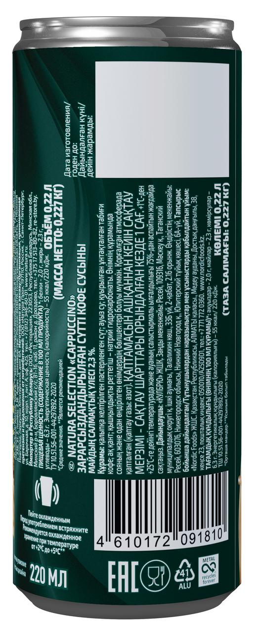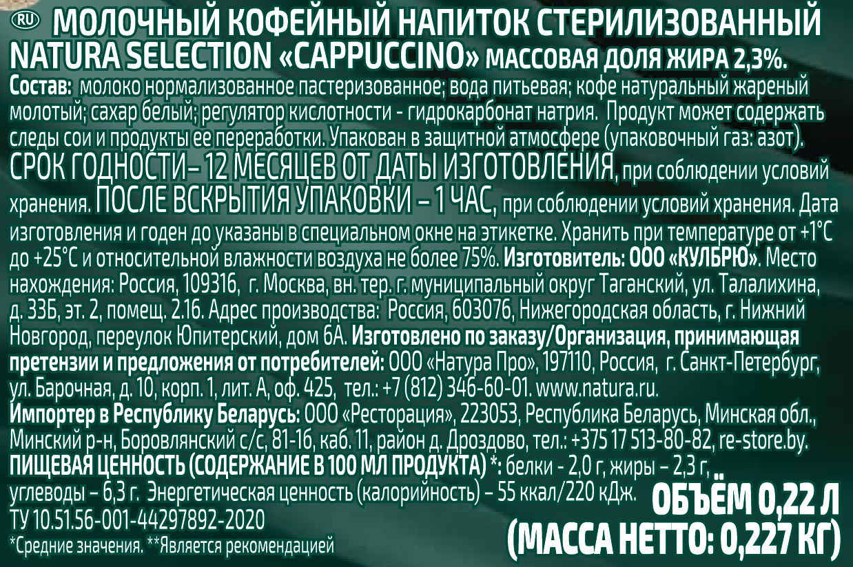 Напиток молочно-кофейный Natura selection Capuccino, 220мл