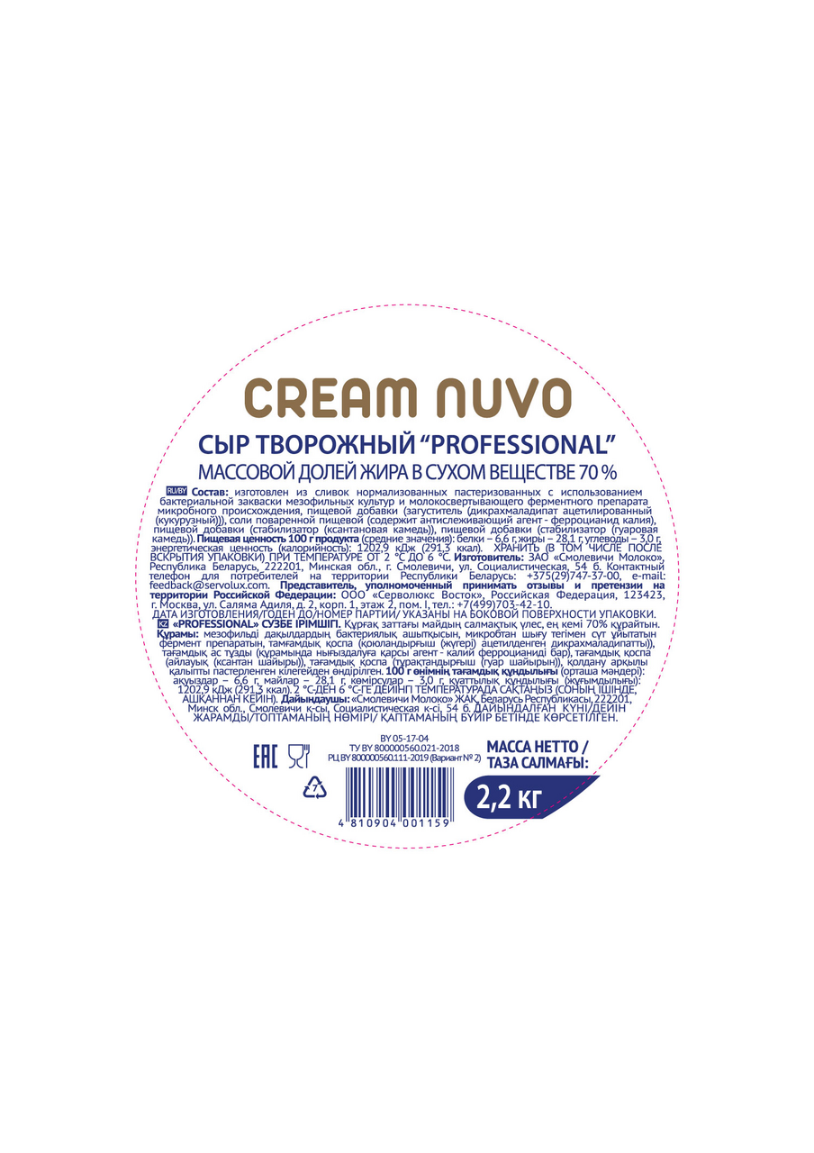 Сыр творожный Cream Nuvo Professional 70%, 2.2кг