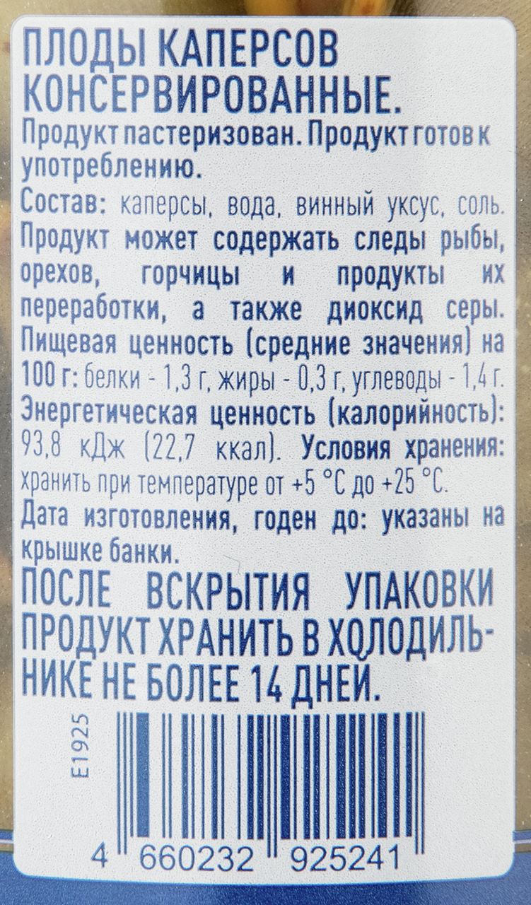 Каперсы, вода, винный уксус, соль.