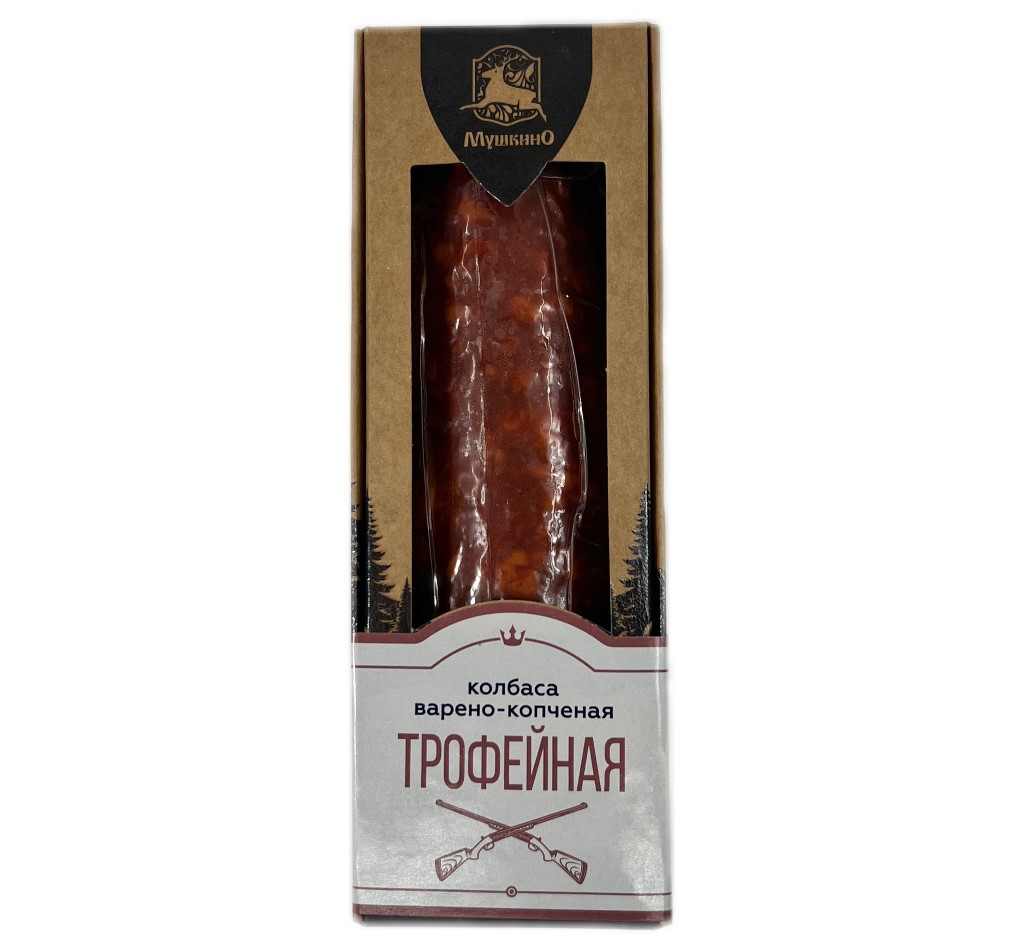 Колбаса Мушкино Трофейная с мясом оленя варено-копченая, 240г