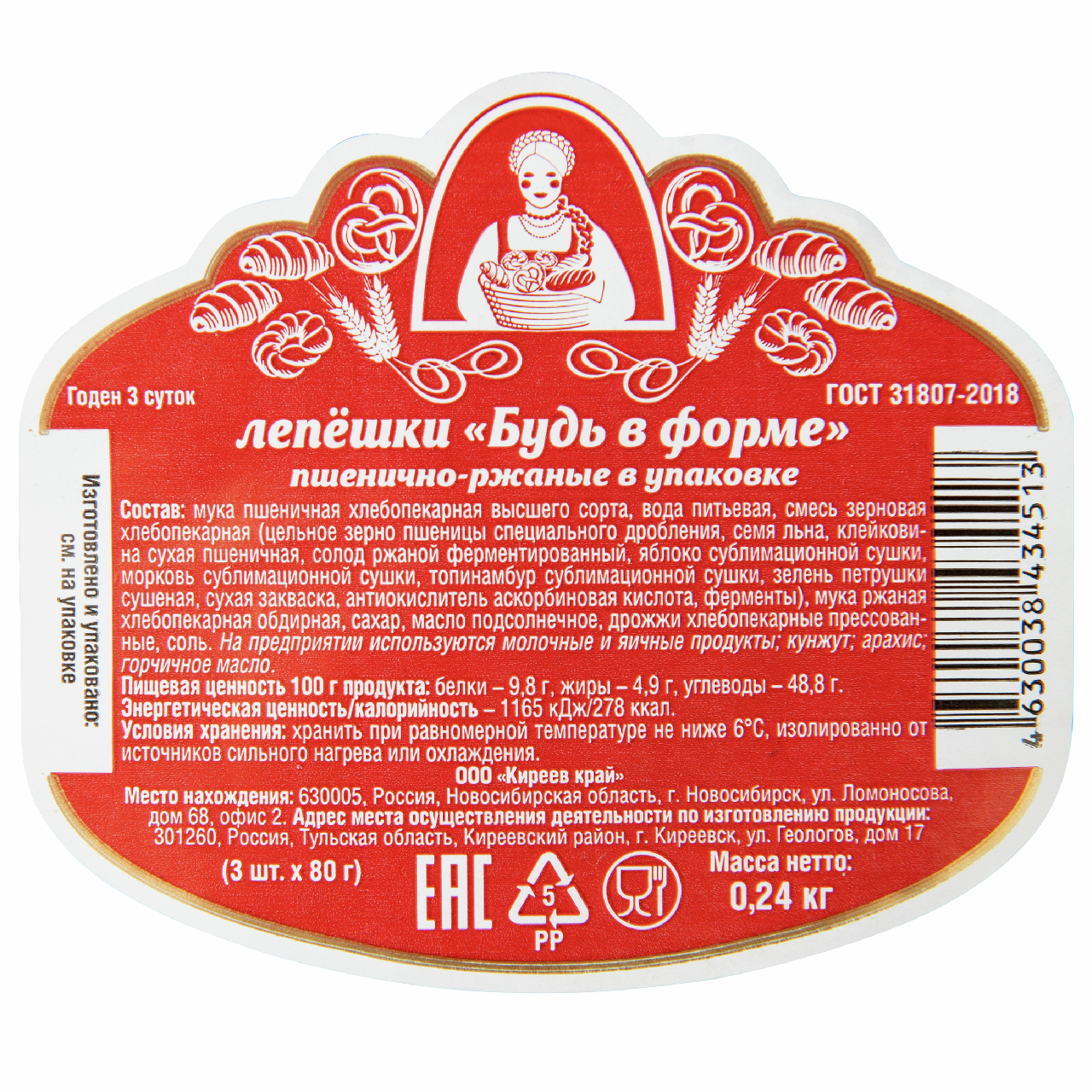 Лепешки пшенично-ржаные Будь в форме ГОСТ, 240г