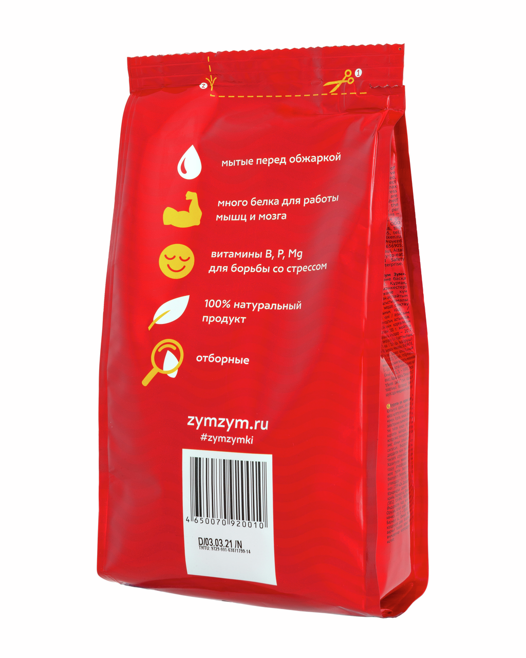 Семечки Зум Зум отличаются ярким вкусом. Вкус семечки чистый, гармоничный, без посторонних привкусов подсолнечника. Семечки равномерно обжарены, хорошая степень прожарки подчеркивает сливочно-ореховый вкус самой семечки. Они легко расщелкиваются, при этом ваши пальцы всегда чистые, так как перед обжаркой семечки моются. Особая технология фасовки, с применением бескислородной среды обеспечивает длительный срок хранения. Продукт упакован в тип упаковки стабило-бэг. Большая упаковка для большой дружной компании.